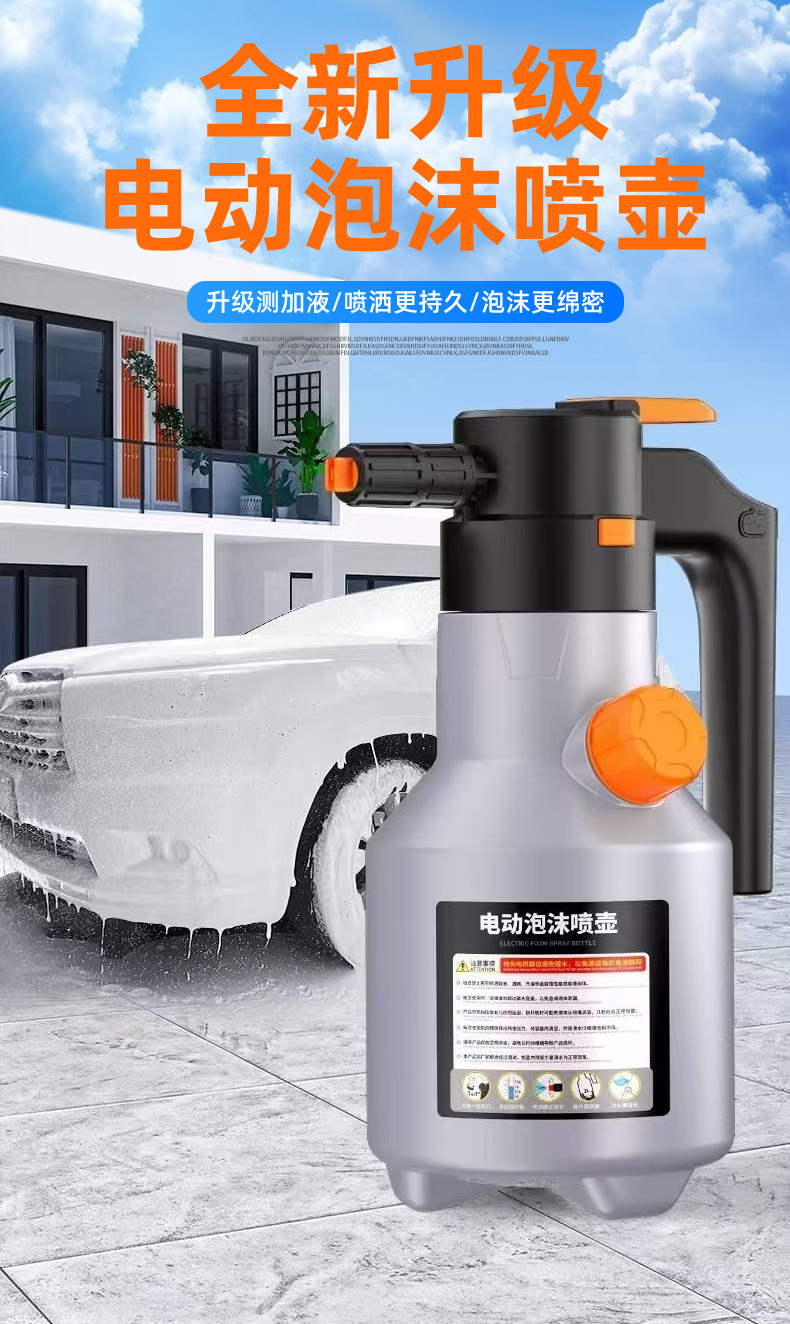 세차 폼 스프레이 병 2L 전기 고압 폼 병 세차 특수 부채꼴 공기압 범용 분무기