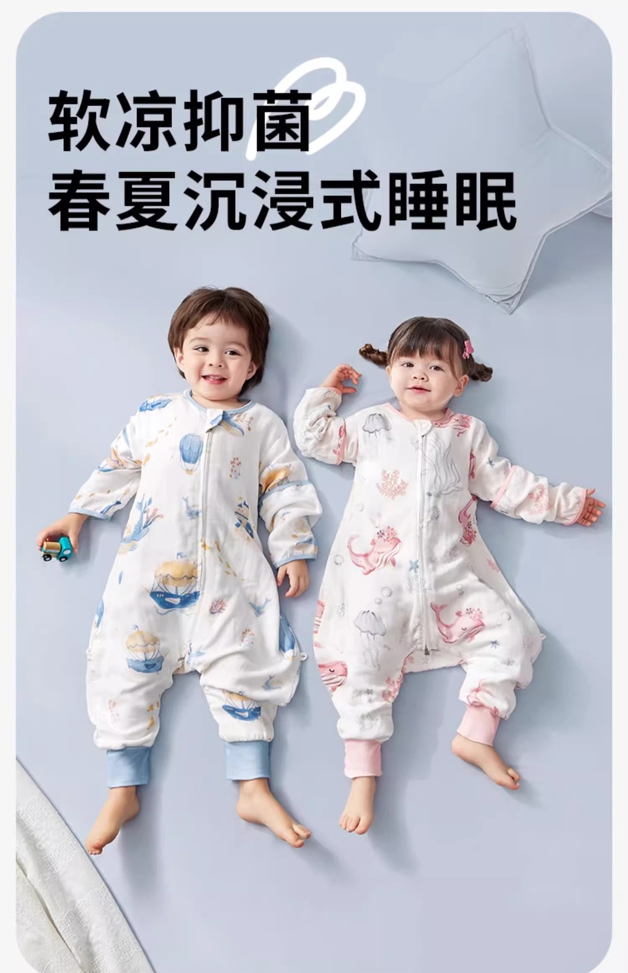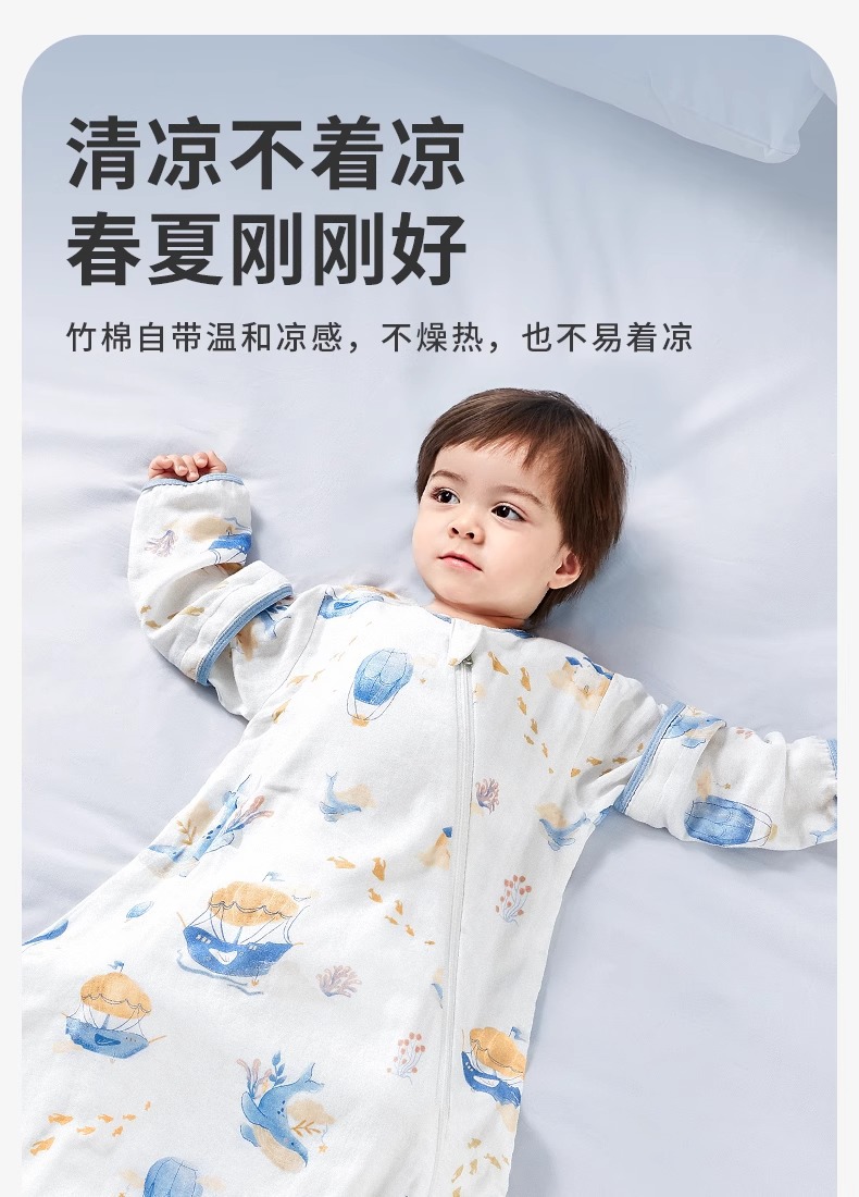 아기 침낭 대나무면 거즈 분할 다리 침낭 아기 안티 킥 이불 올인원 클래스 A 사계절 범용 유아 침낭스토어 가기