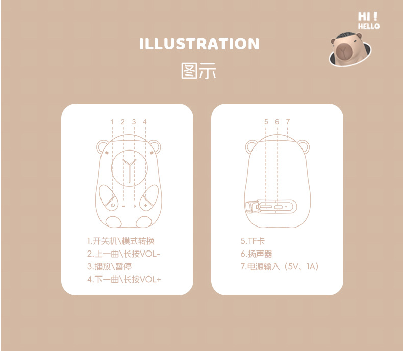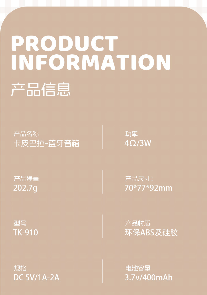 뜨거운 판매 Kapibala 블루투스 스피커 무선 미니 스피커 휴대용 긴 배터리 수명 홈 귀여운 카드