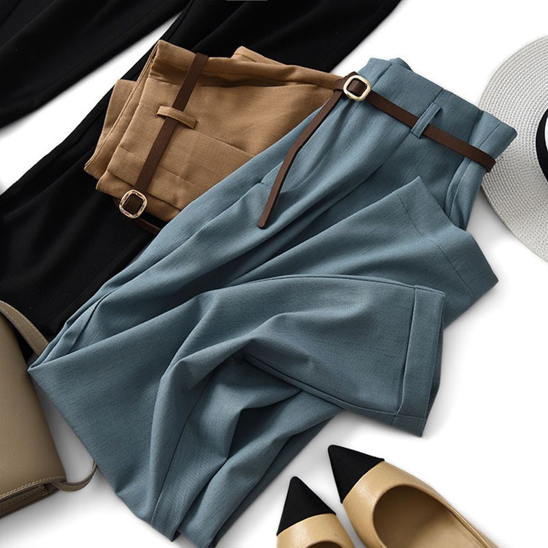 배형 체형을 위한 BI, 슬리밍 효과가 뛰어납니다! 봄 스트레이트 하이웨이스트 슬림 테이퍼드 수트팬츠 담배파이프팬츠 9부
