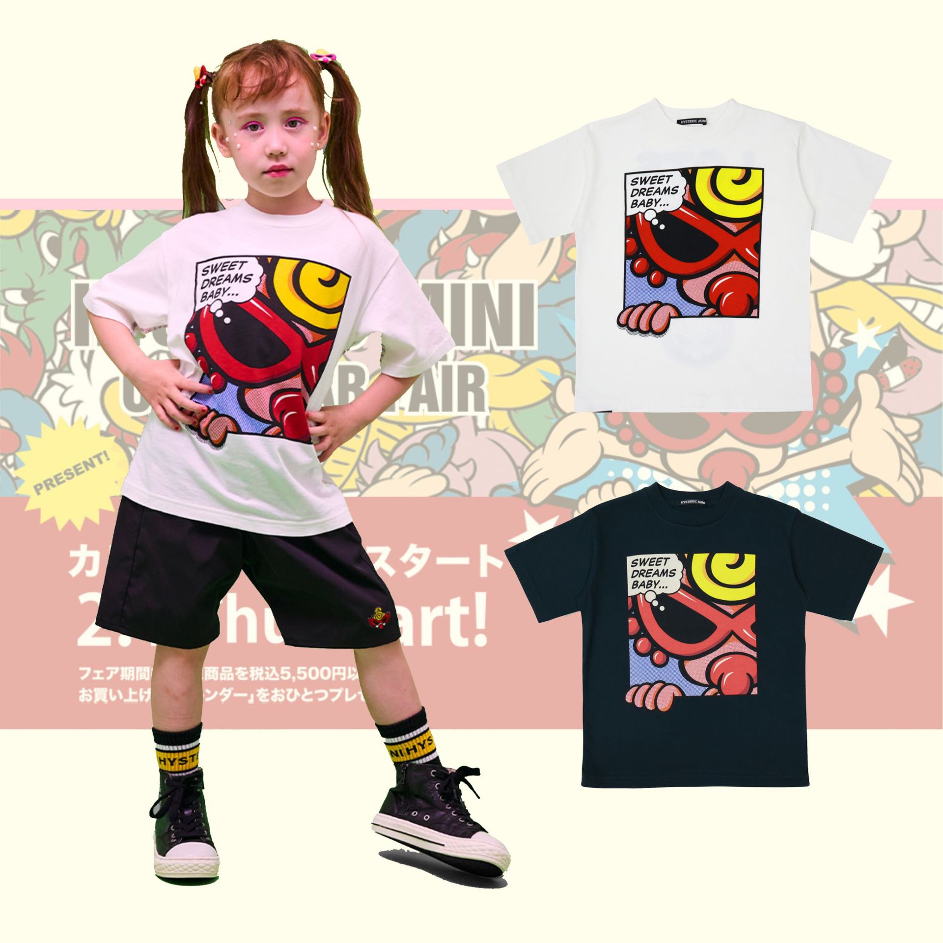 블랙 슈퍼 젖꼭지 아동복 일본 유행 브랜드 여름 신제품 남성과 여성 아동 면화 만화 프린트 라운드 넥 반팔 티셔츠스토어 가기