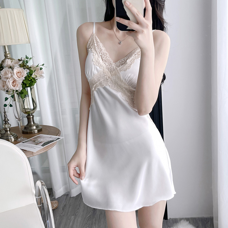 • YL 레이스 아이스 실크 나이트가운 - 오프화이트