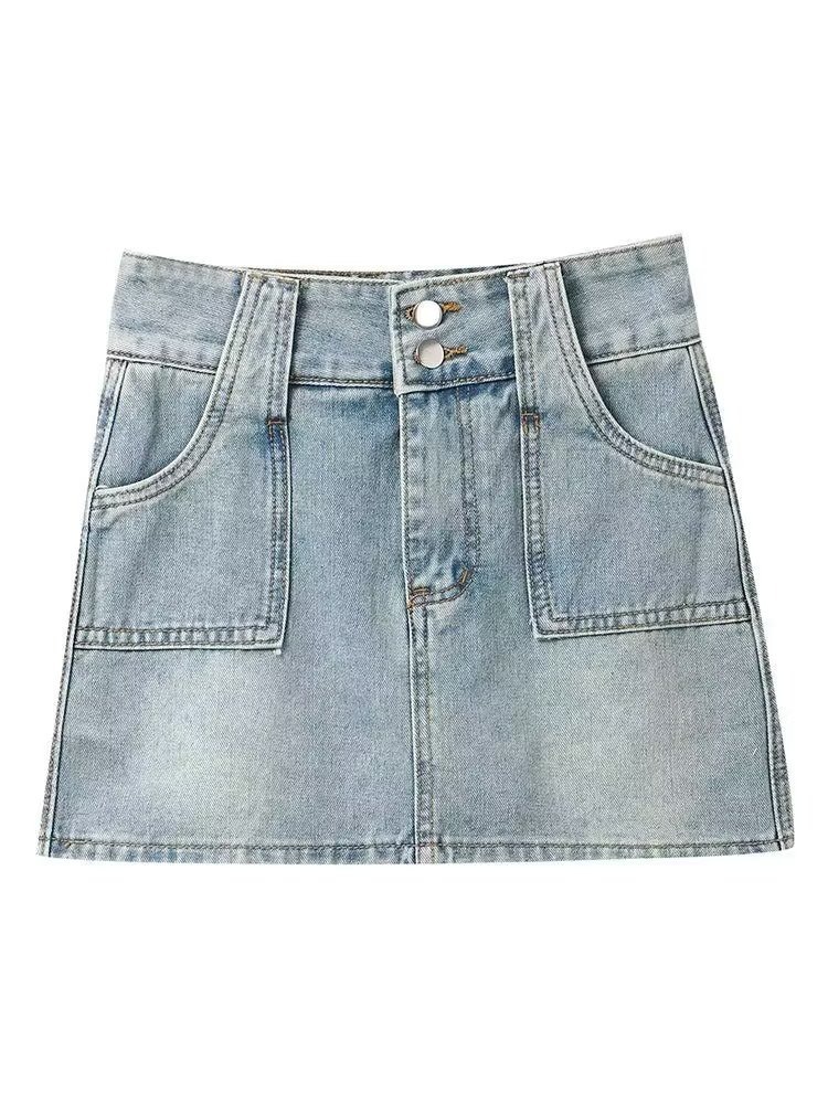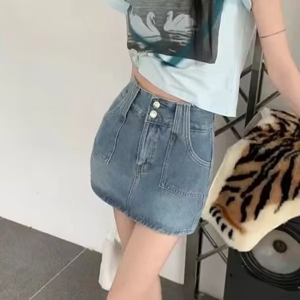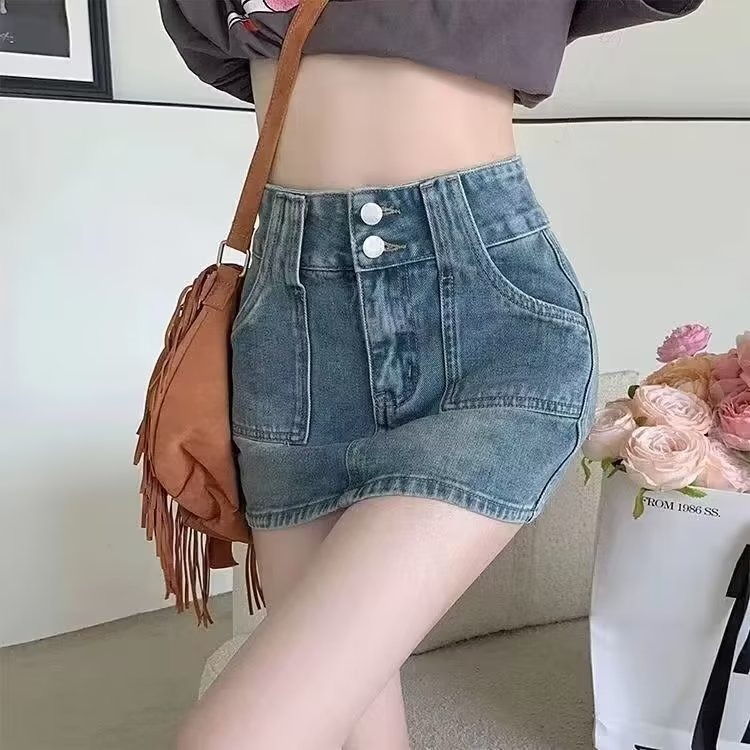 몸집이 작은 여성과 핫한 소녀들을 위한 데님 스커트, 니치 디자인, 하이웨이스트 힙 커버 숏 스커트, 초단 스커트스토어 가기
