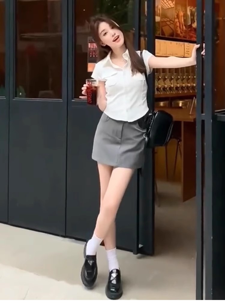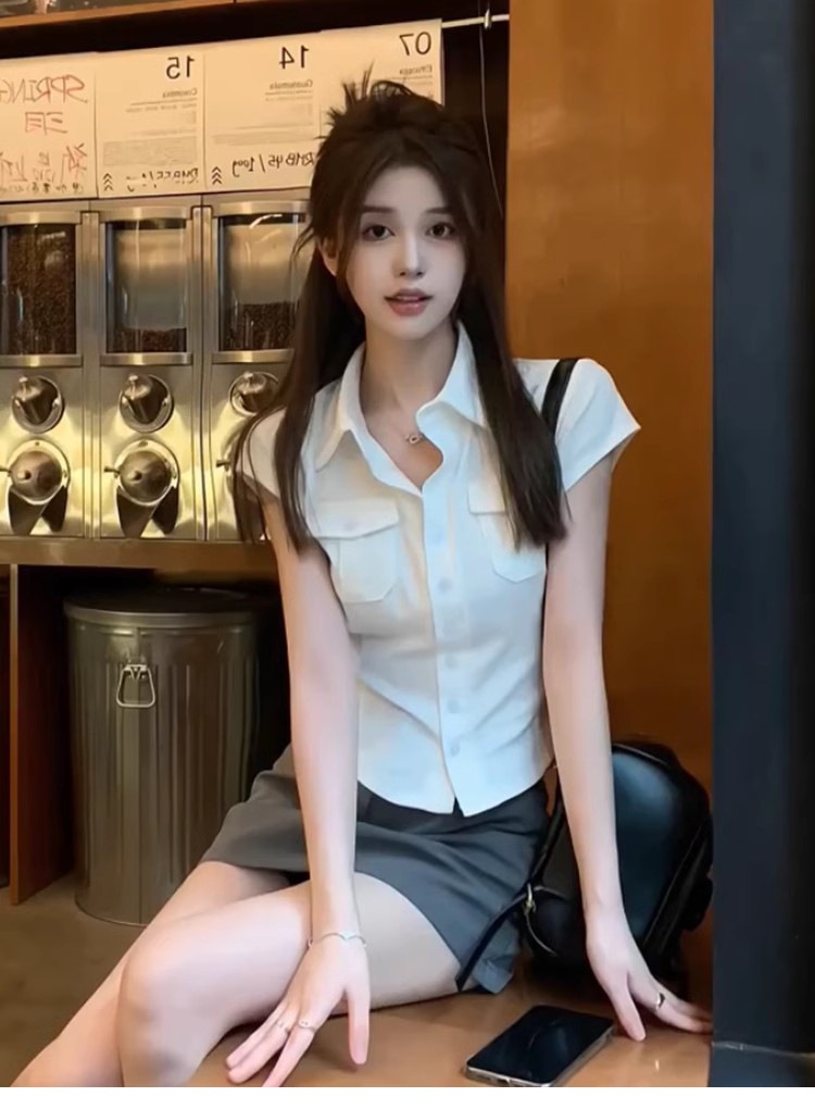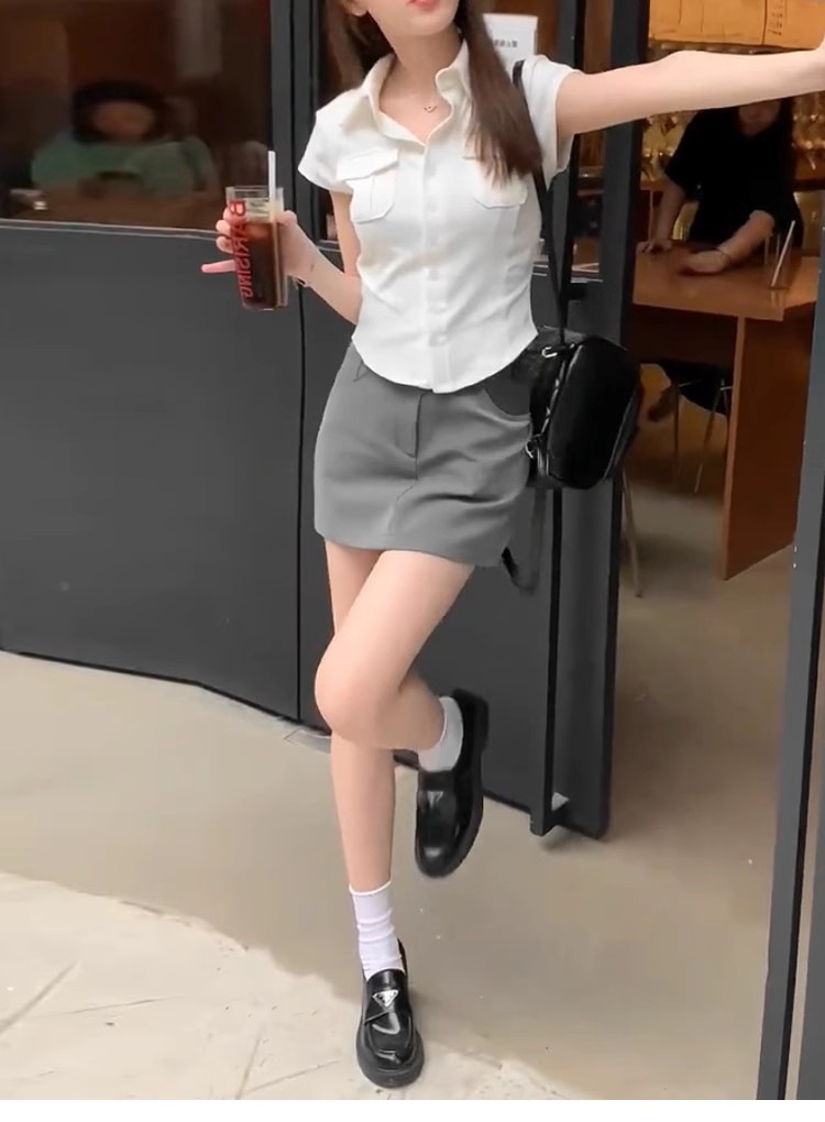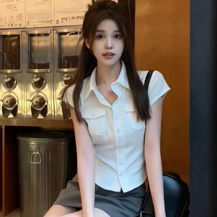여름 여성을 위한 하이엔드 화이트 라펠 오른쪽 어깨 반팔 티셔츠, 짧은 스타일, 허리 조절, 순수한 섹시한 핫걸 탑, 트렌디스토어 가기