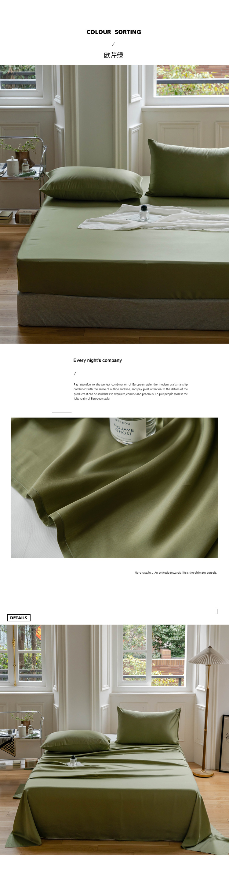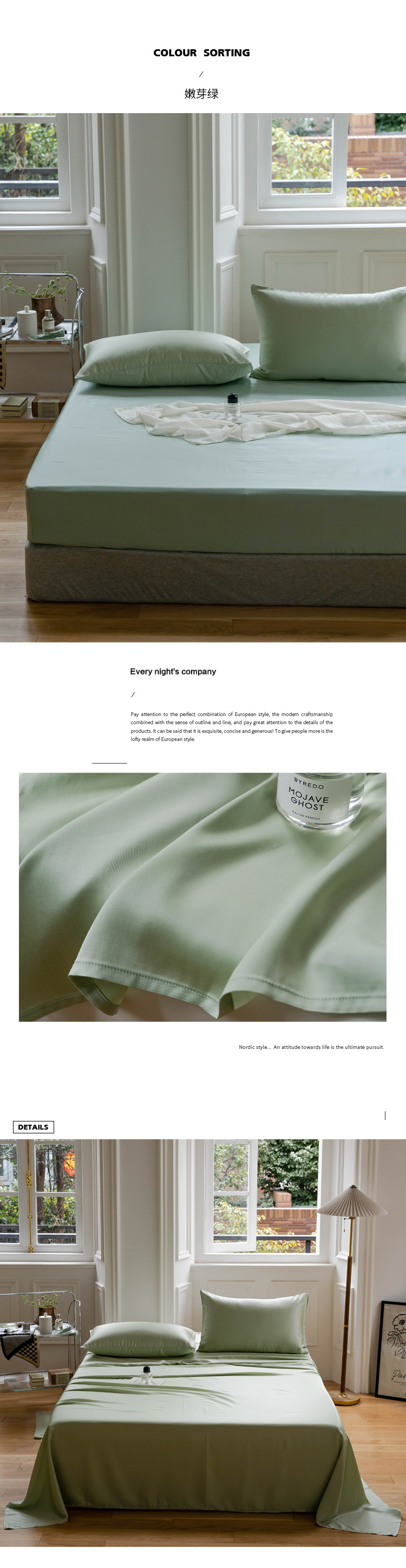 렌징 텐셀 침대 시트 60수, 심플한 단색 시원한 아이스 실크 여름 알몸 수면 침구 싱글 및 더블