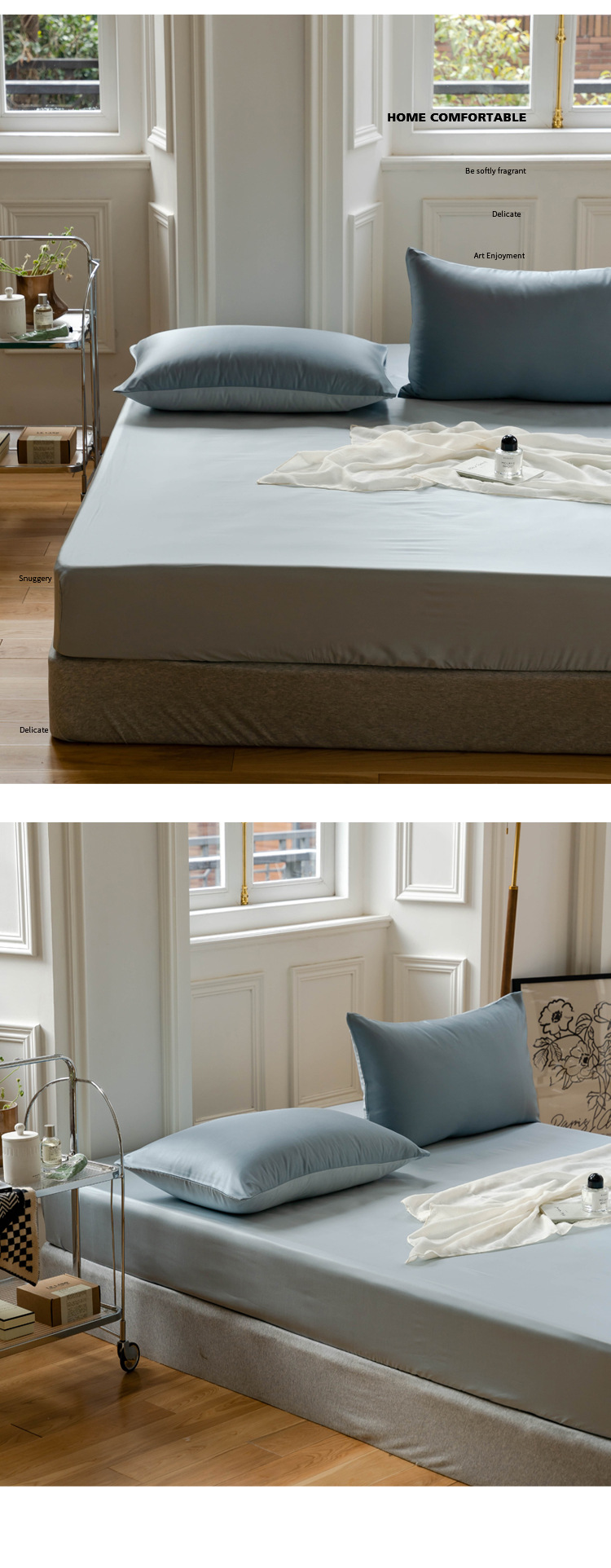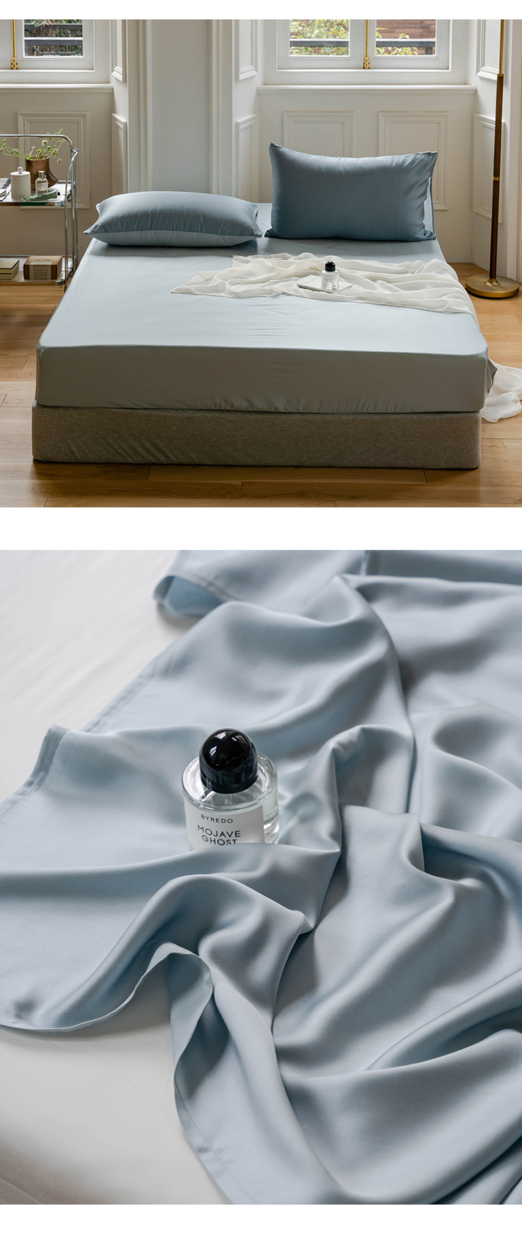 렌징 텐셀 침대 시트 60수, 심플한 단색 시원한 아이스 실크 여름 알몸 수면 침구 싱글 및 더블스토어 가기
