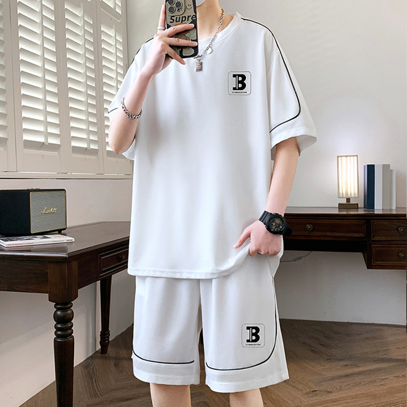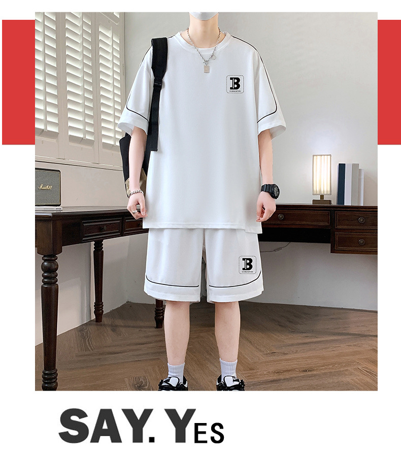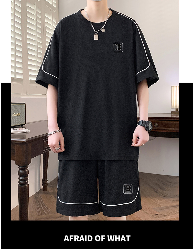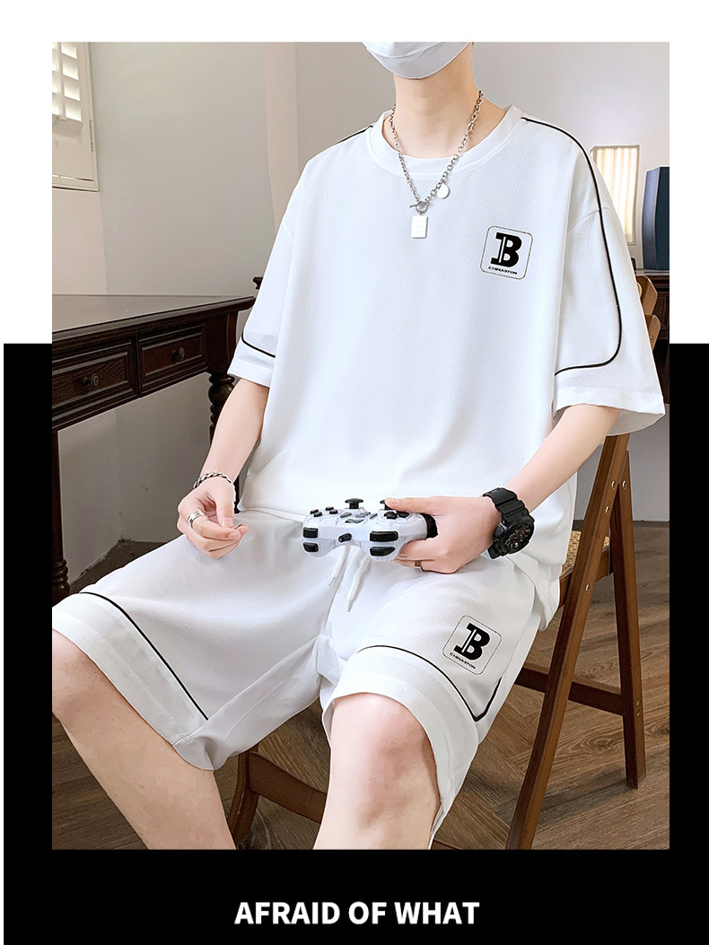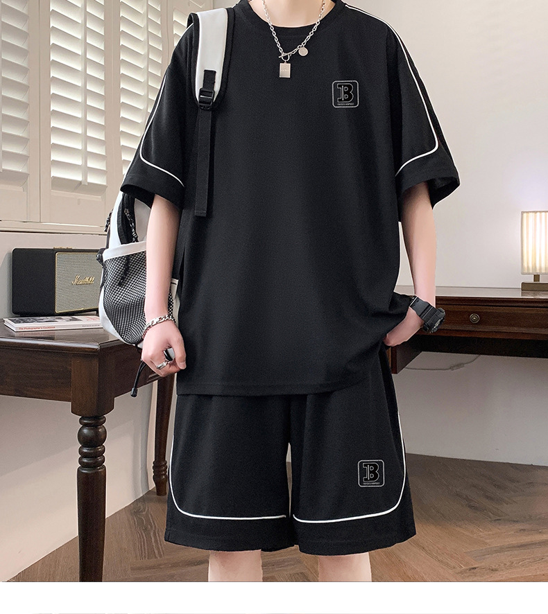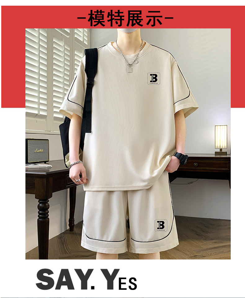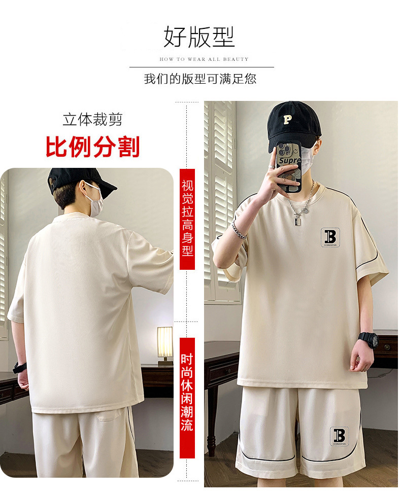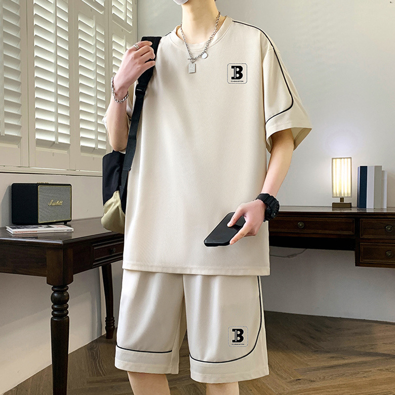 스팟 도매 여름 느슨한 홍콩 스타일 반팔 하이 엔드 남성 여름 정장 미국 유행 캐주얼 스포츠 정장스토어 가기