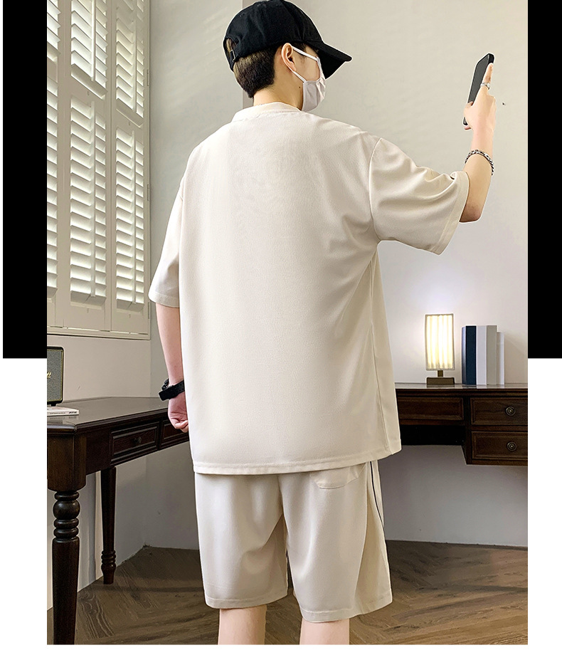 스팟 도매 여름 느슨한 홍콩 스타일 반팔 하이 엔드 남성 여름 정장 미국 유행 캐주얼 스포츠 정장