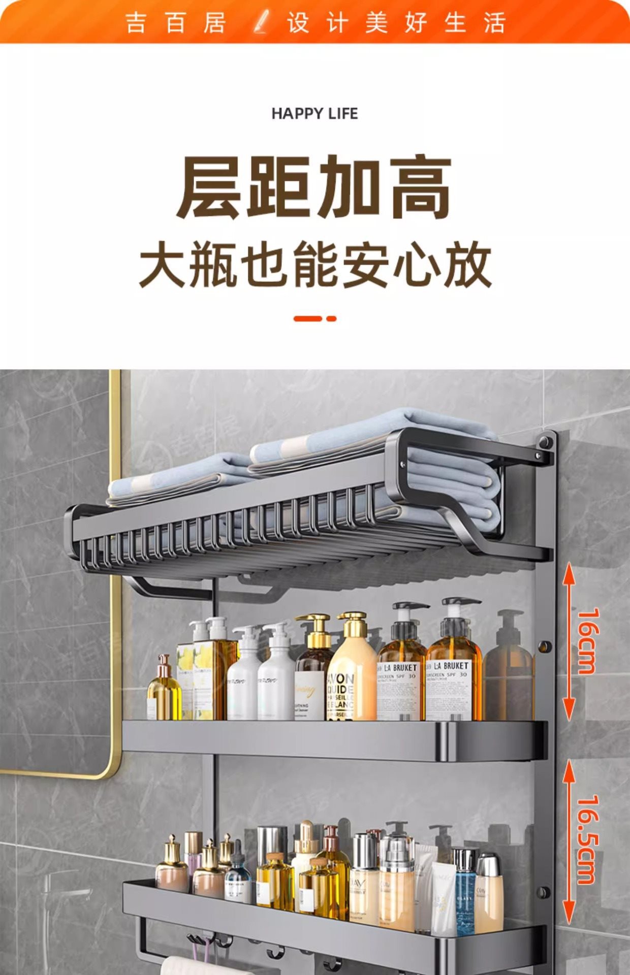 공간 알루미늄 타월 랙 화장실 스토리지 랙 통합 펀치 프리 화장실 욕실 벽 장착 화장실 타월 랙스토어 가기