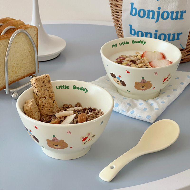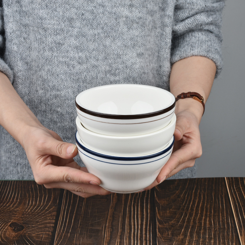 세라믹 간단한 라인 도자기 가정용 트럼펫 그릇 밥 그릇 수프 그릇 5inch 과일 요구르트 아침 식사 오트밀 그릇스토어 가기