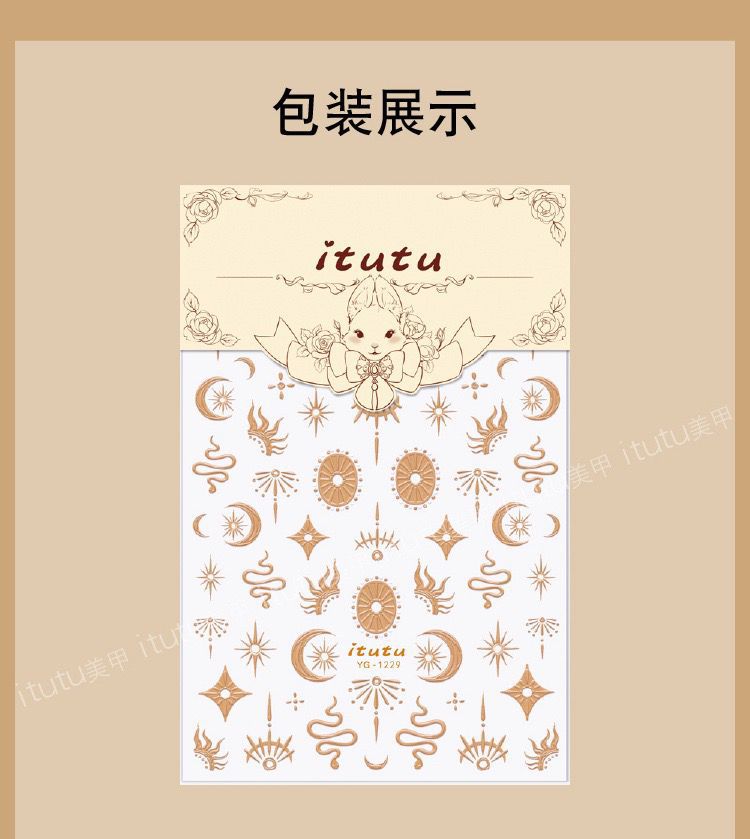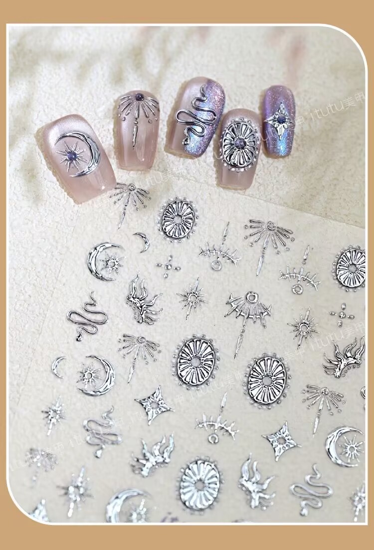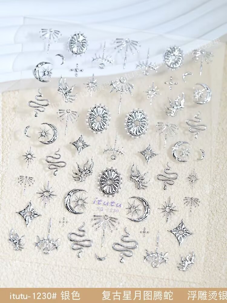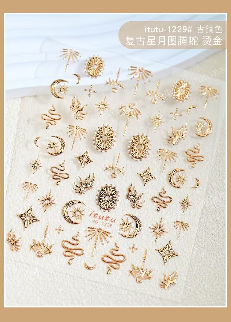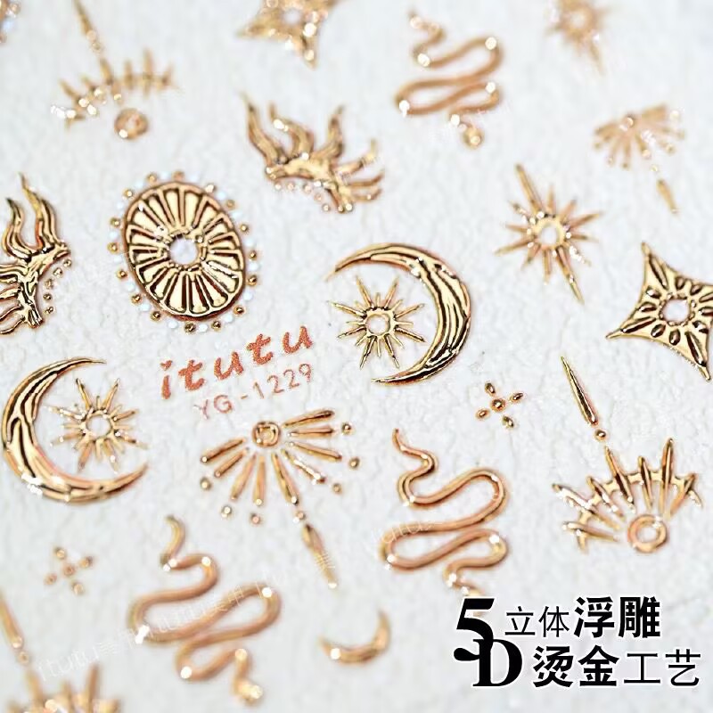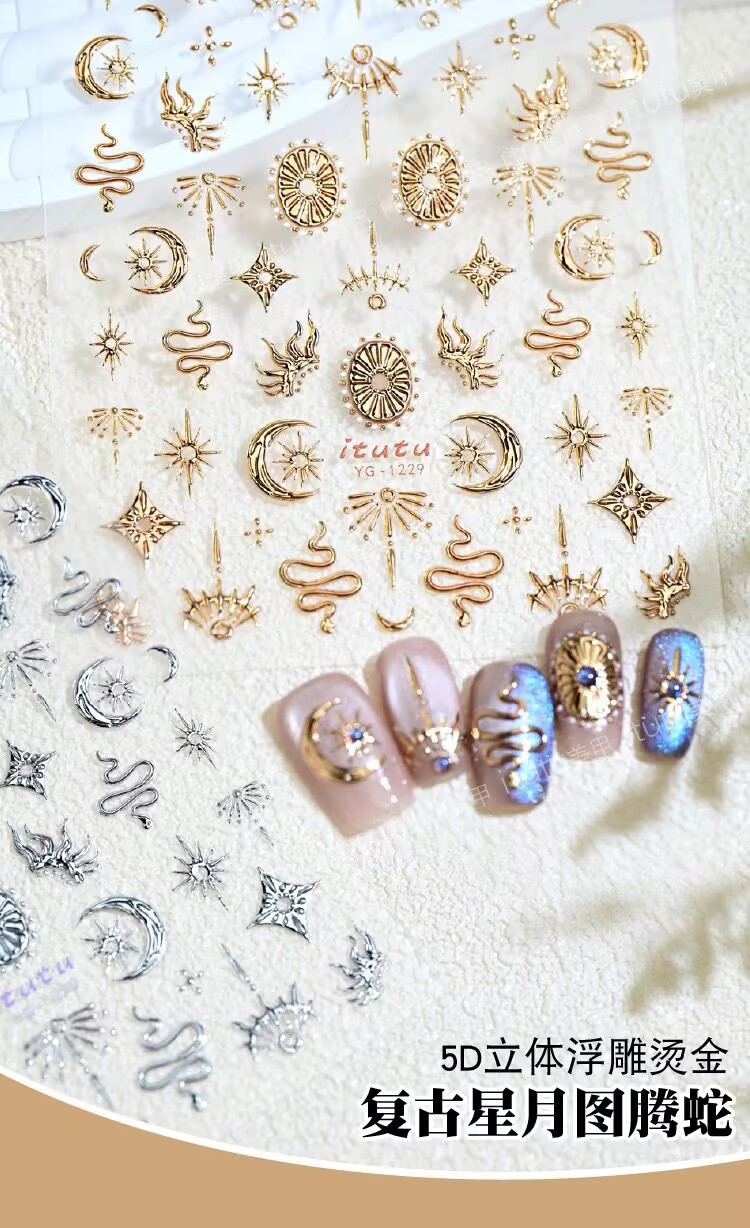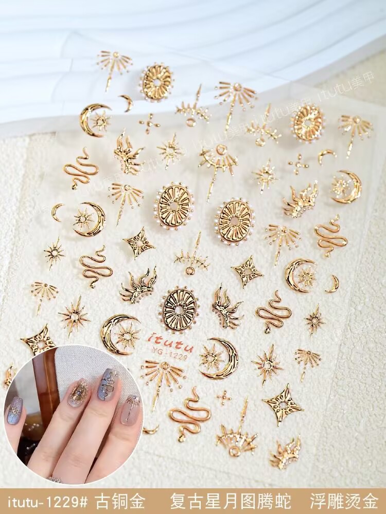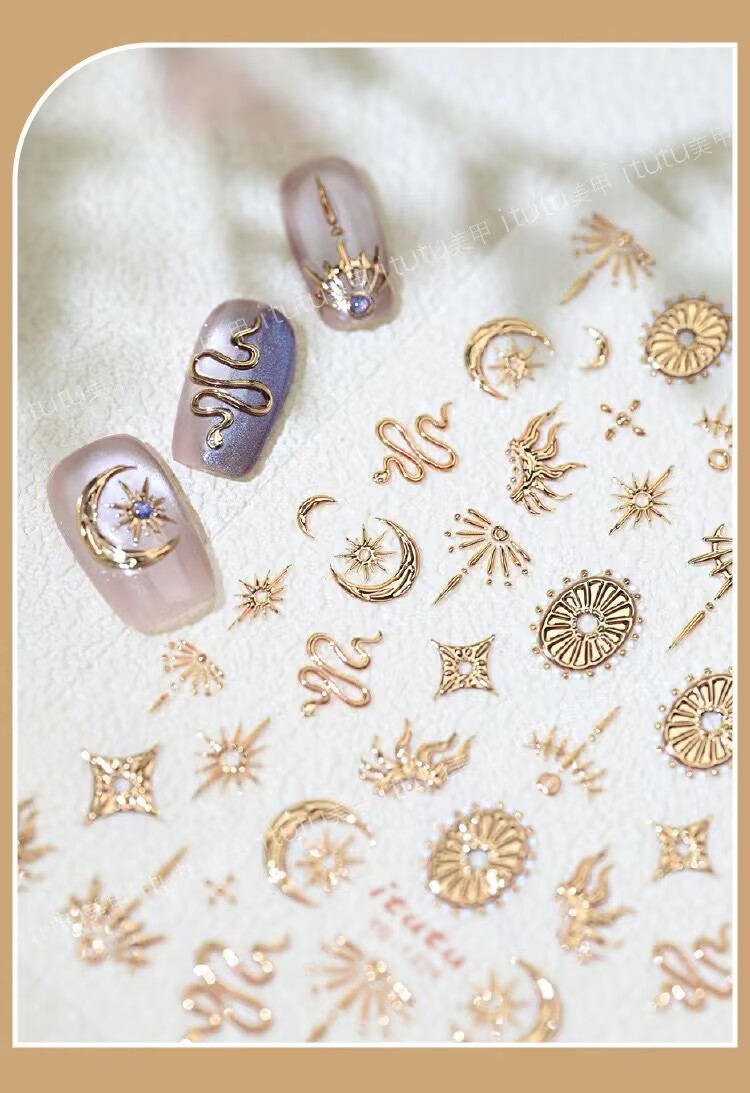 국경 간 매니큐어 양각 금은 복고풍 이집트 파라오 별과 달 토템 뱀 보헤미안 네일 스티커