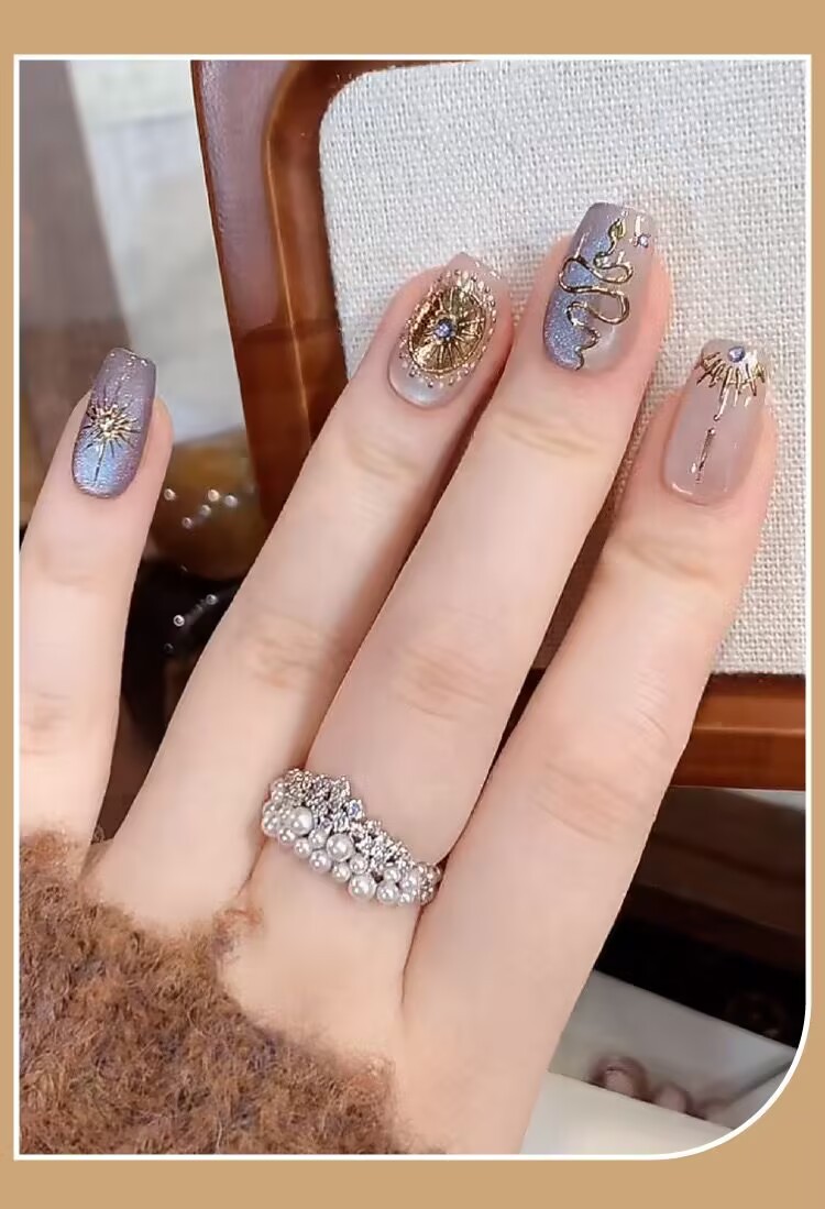 국경 간 매니큐어 양각 금은 복고풍 이집트 파라오 별과 달 토템 뱀 보헤미안 네일 스티커스토어 가기