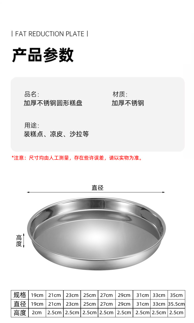 깊고 두꺼운 스테인리스 스틸 평판 젤리 쿨링 패드 베이킹 누가 찜밥 팬 찜 케이크 원형 팬