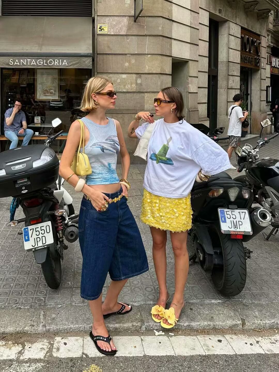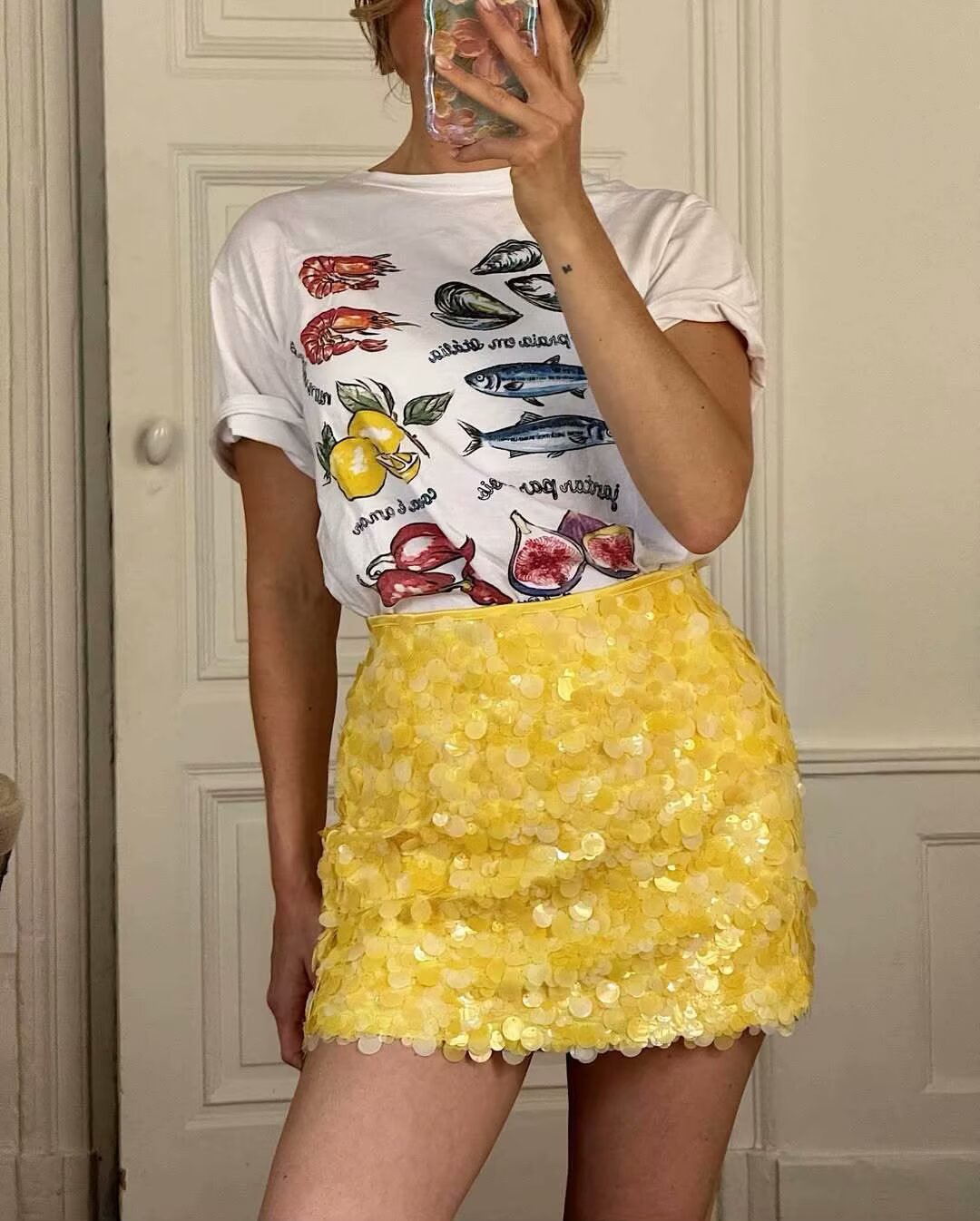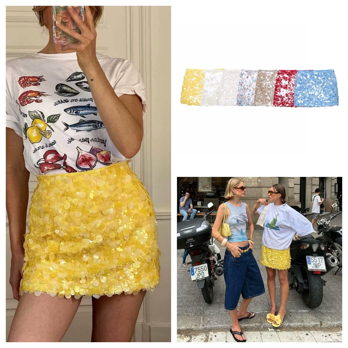 유럽과 미국의 대외 무역 도매 2025 여름 신상 여성 스팽글 패션 하이웨이스트 미니 8색 여성용 스커트