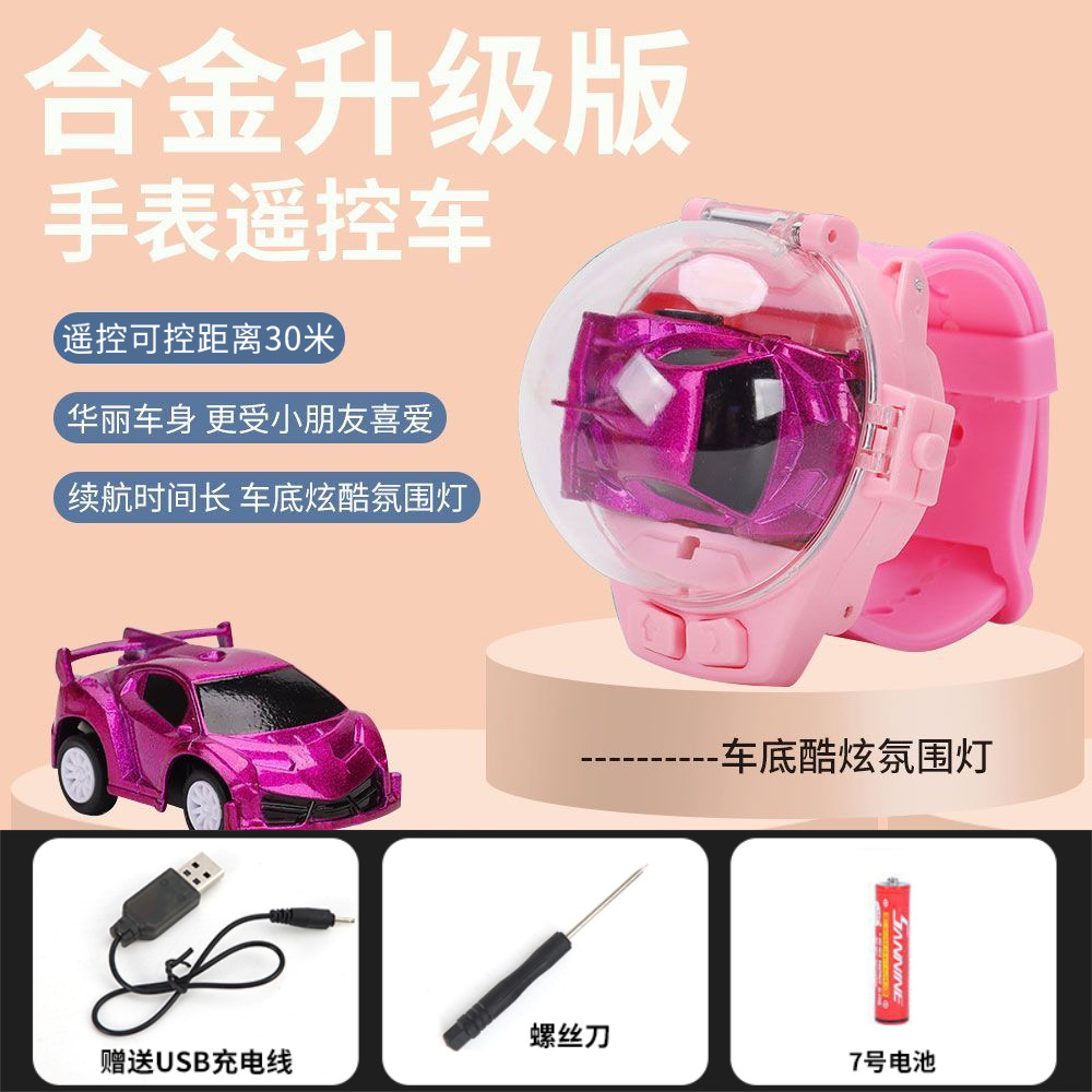 합금 미니 시계 원격 제어 자동차 다채로운 조명 자동차 모델 소년과 소녀 생일 선물 장난감 전기 자동차