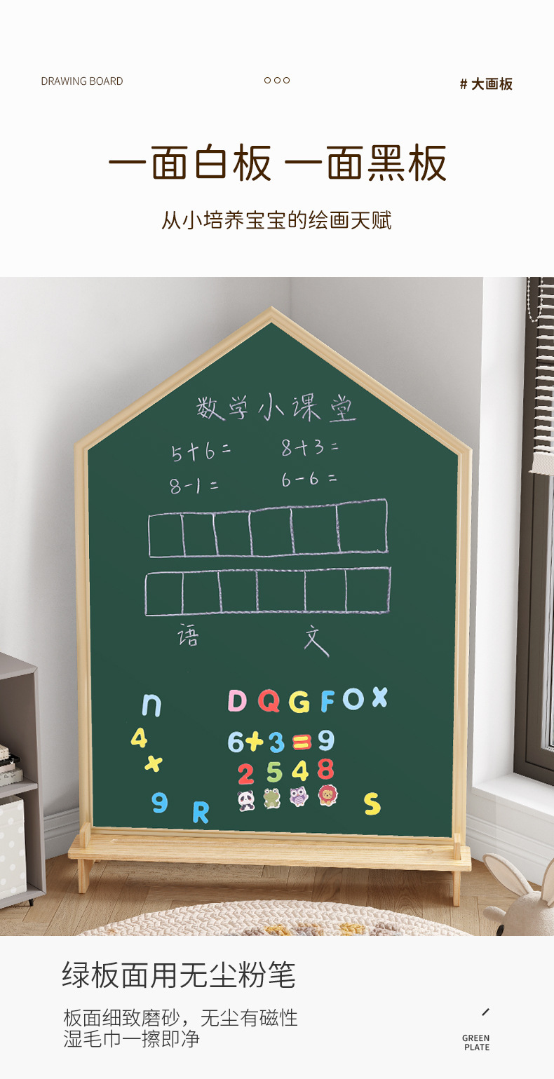 어린이 장난감 자기 드로잉 보드 대형 가정용 먼지가없는 낙서 보드 아기 화이트 보드 양면 작은 칠판 지울 수 있음