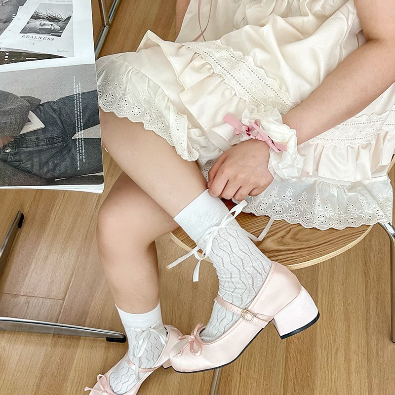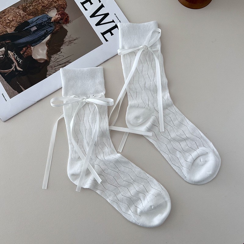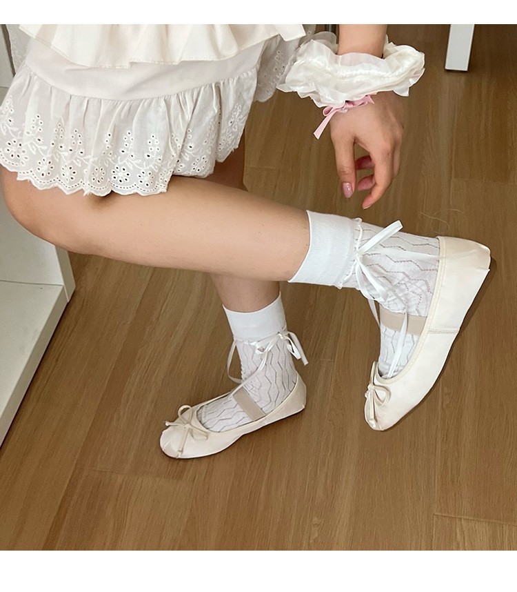 여름 얇은 양말 여성용 리본 양말 여성용 프렌치 스트랩 발레 스타일 소녀용 양말