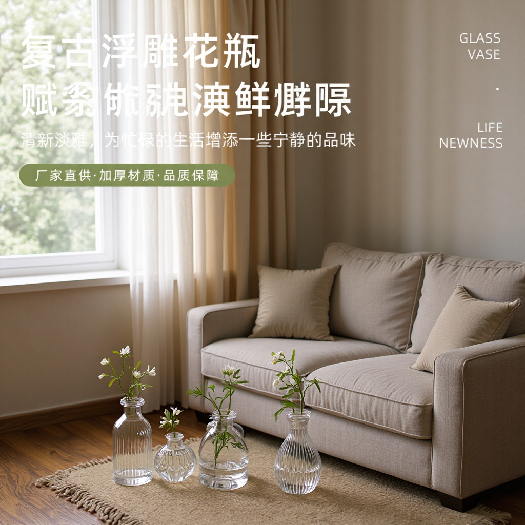북유럽풍 라이트 럭셔리 레트로 꽃병, 수경재배 식물용 유리병, 프렌치 인스 스타일 미니 꽃병스토어 가기