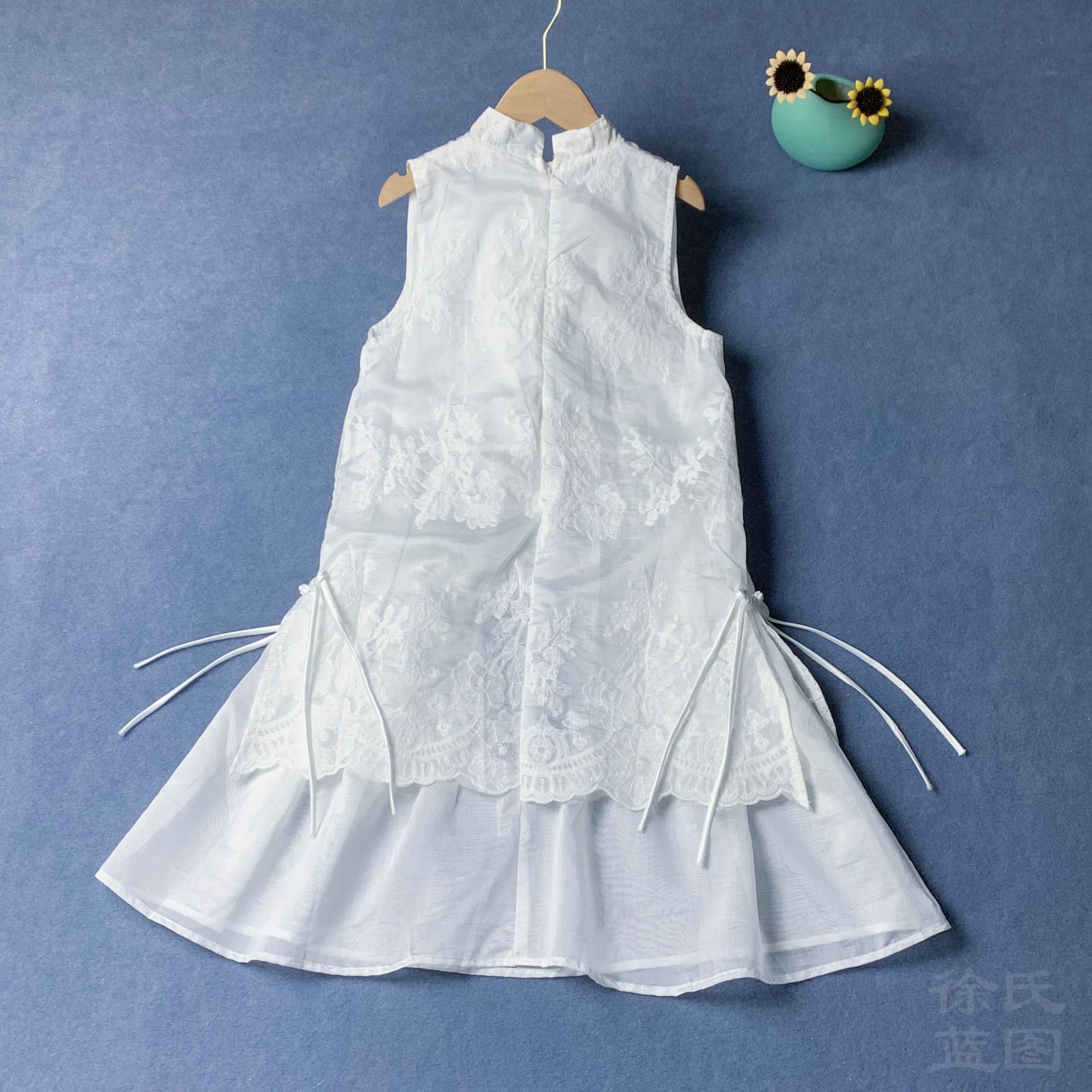 타이 염색 흰색 소녀 흰색 드레스 중국 스타일 어린이 여름 드레스 스탠드 칼라 민소매 수 놓은 아동 의류 치파오 드레스스토어 가기