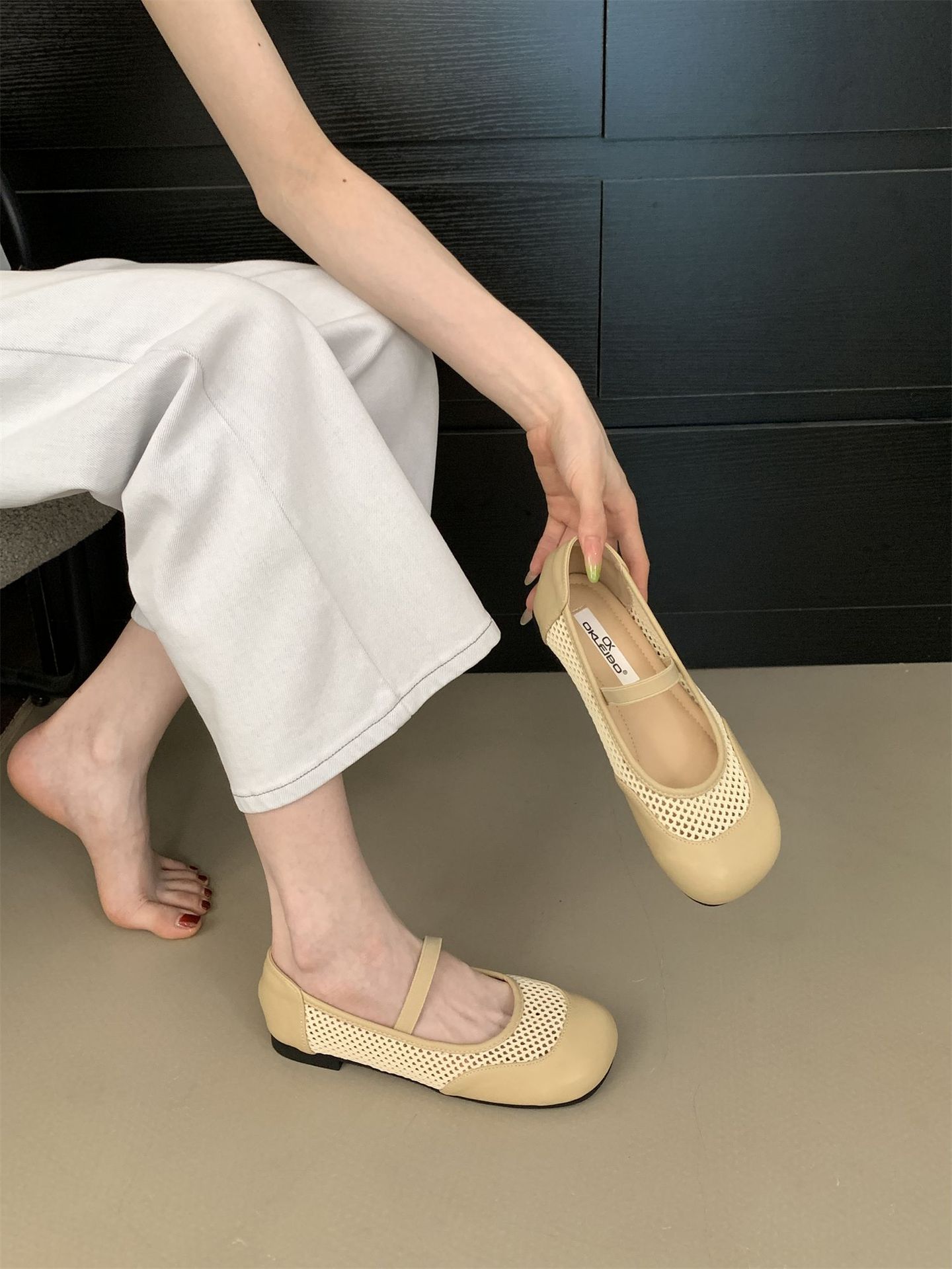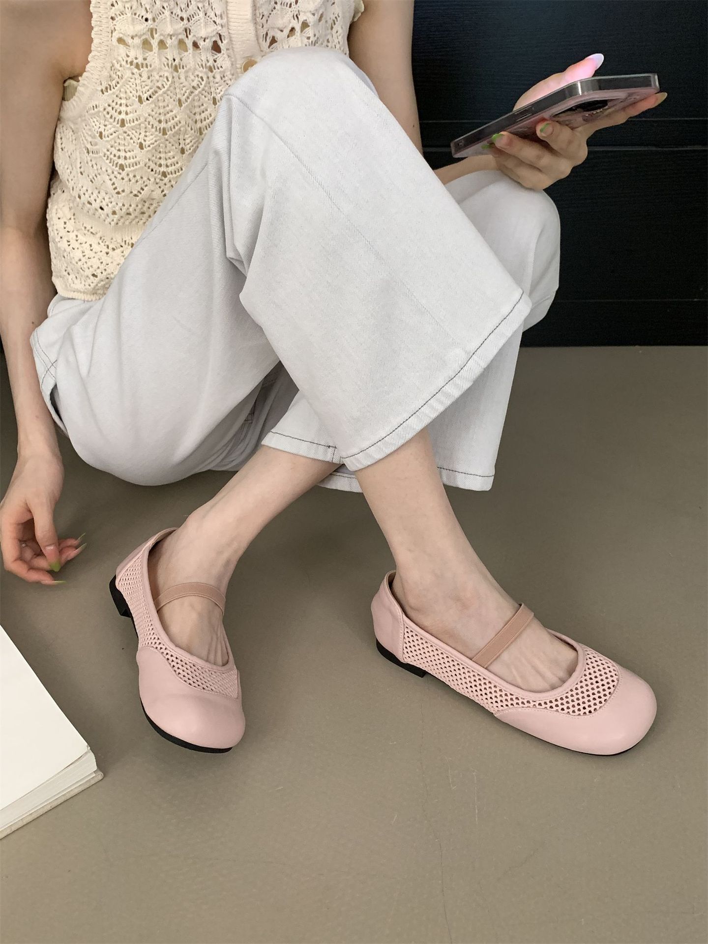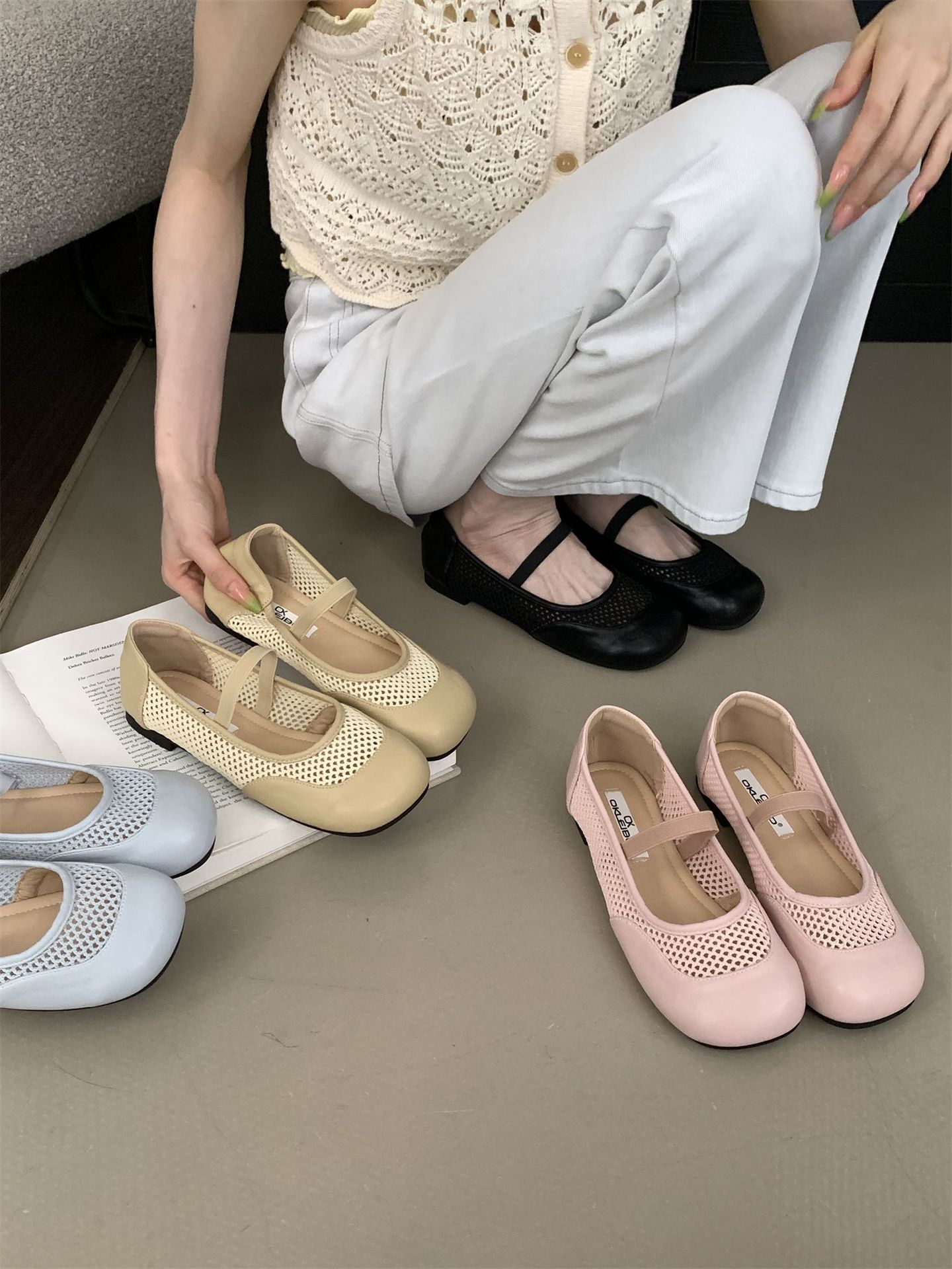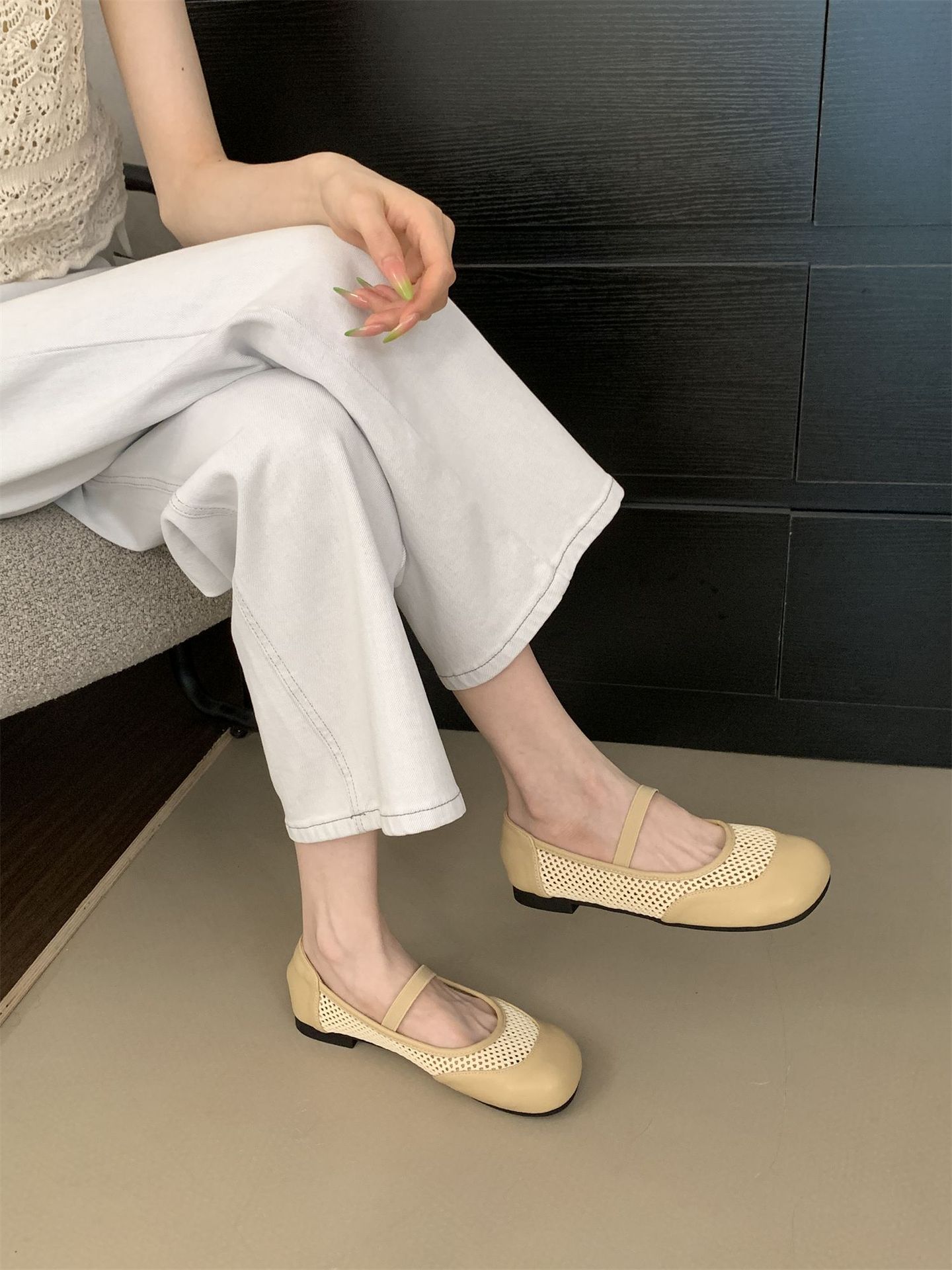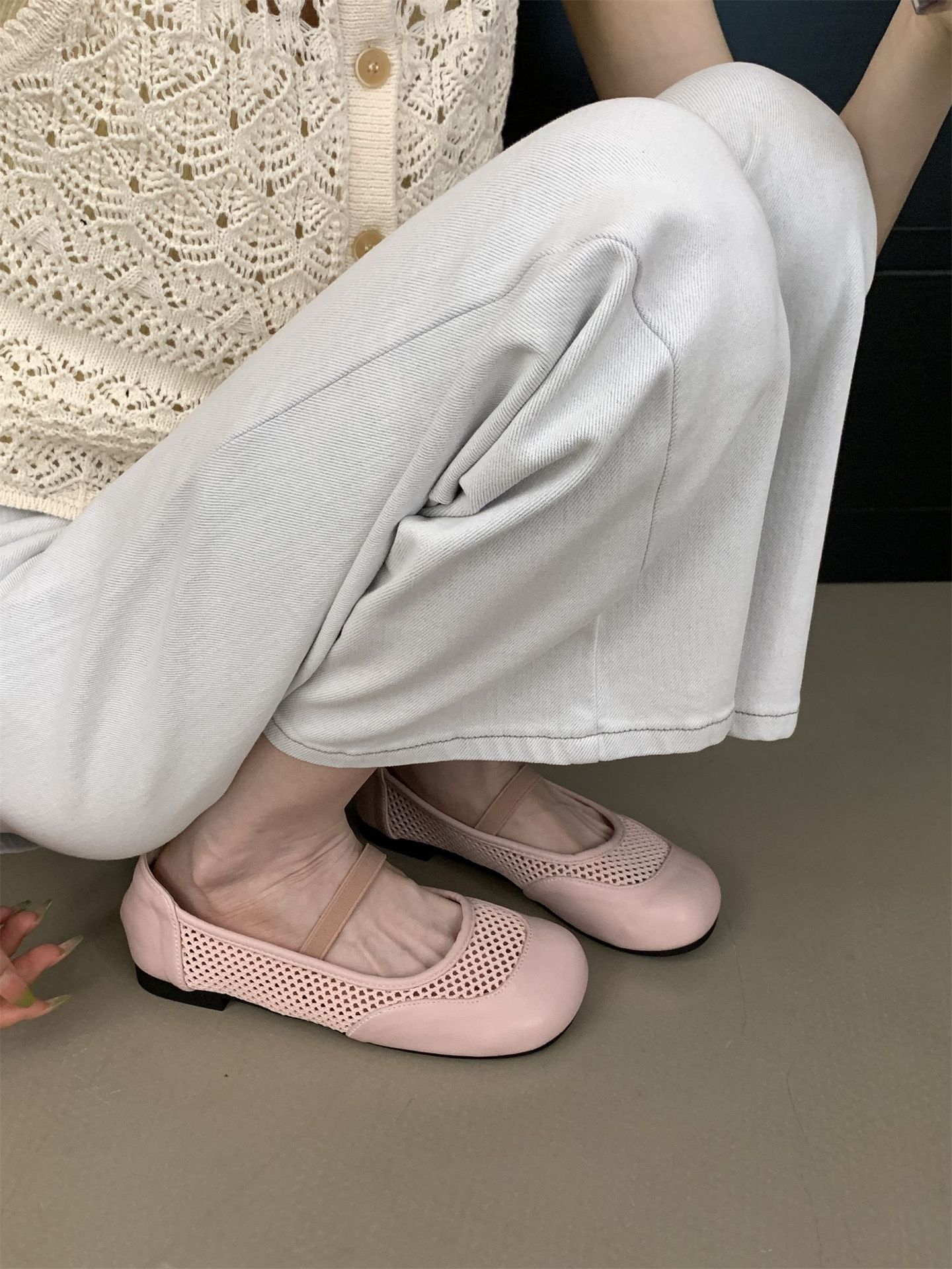 2025년 여름 한국식 프렌치 복고 라운드 투 니치 메쉬 중공 플랫 캐주얼 발레 스타일 발레 슈즈스토어 가기