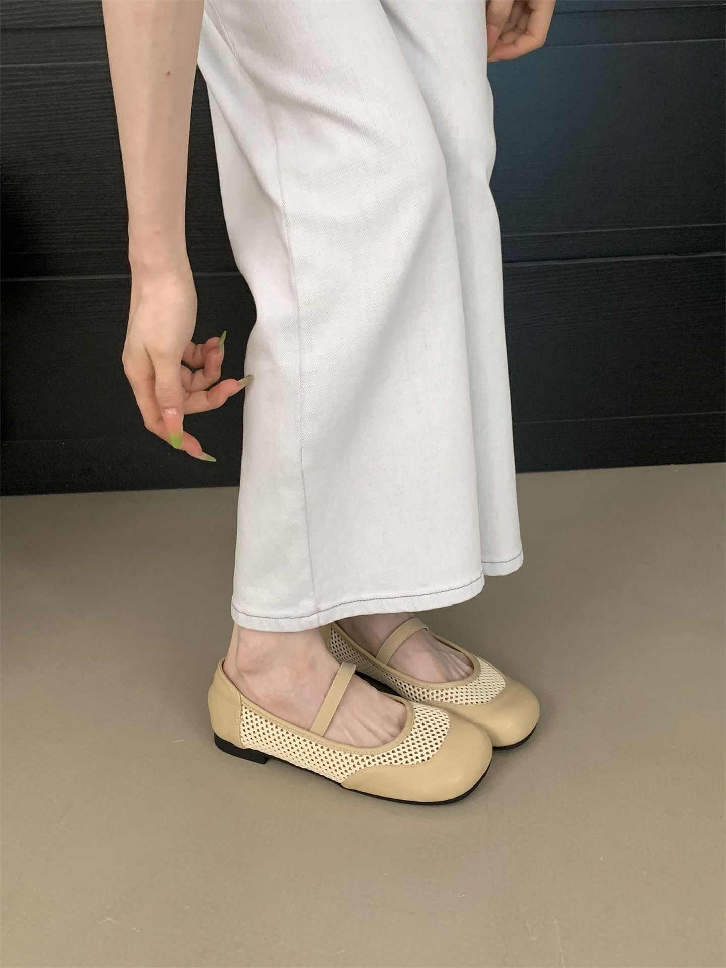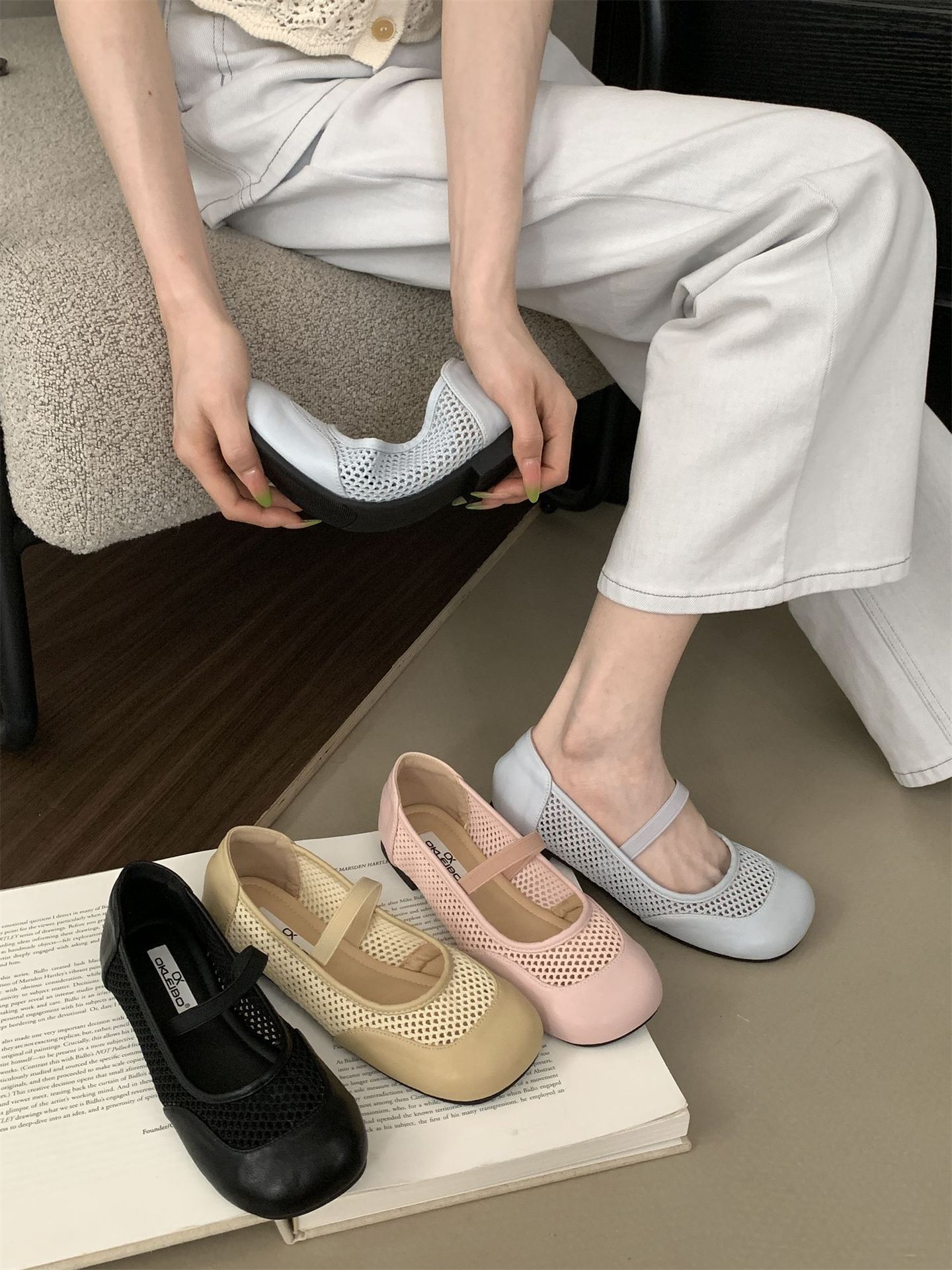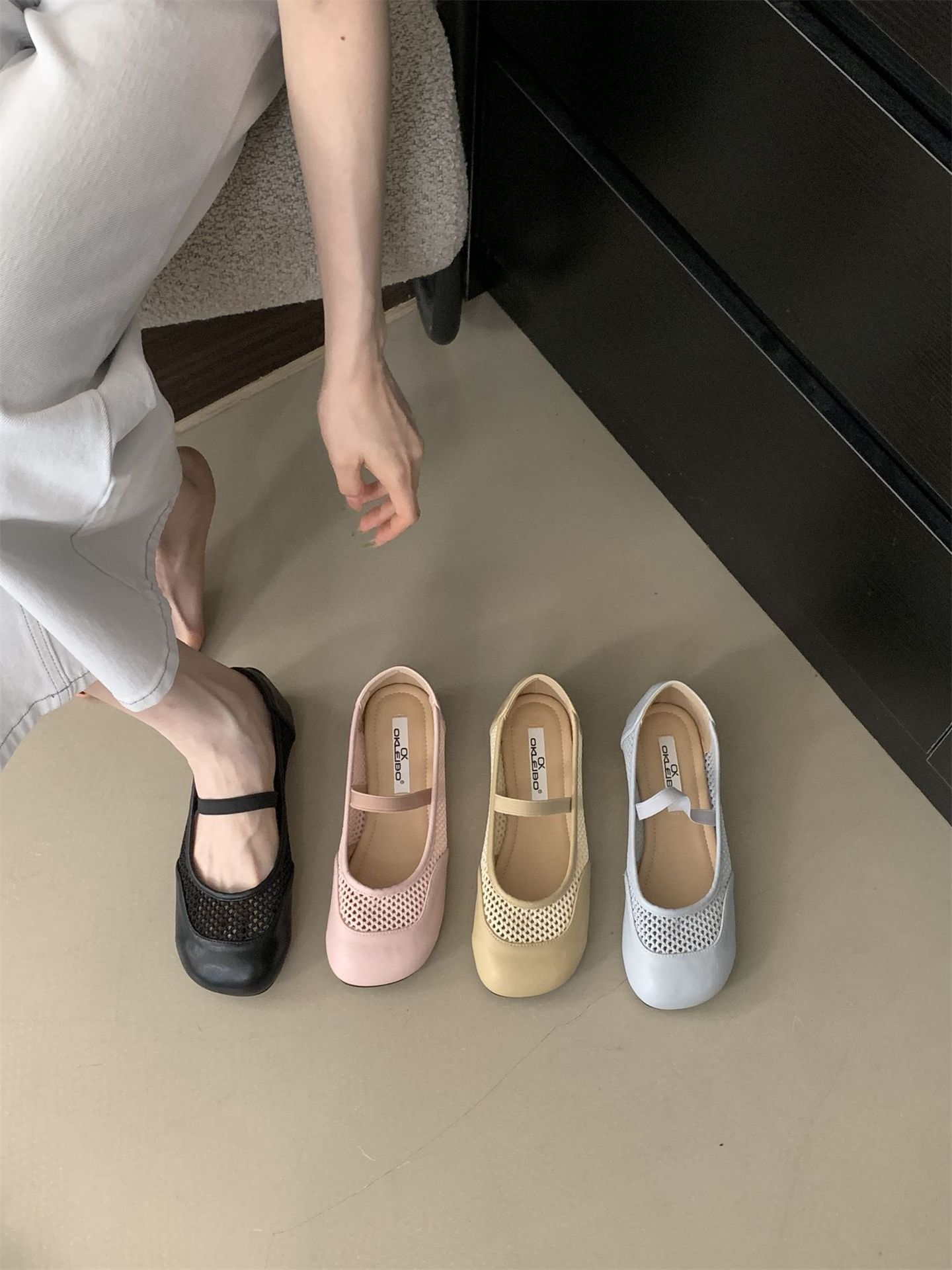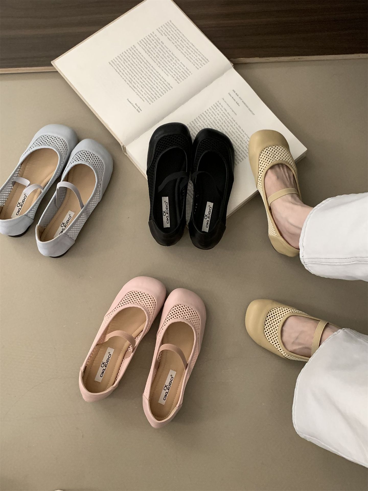2025년 여름 한국식 프렌치 복고 라운드 투 니치 메쉬 중공 플랫 캐주얼 발레 스타일 발레 슈즈스토어 가기