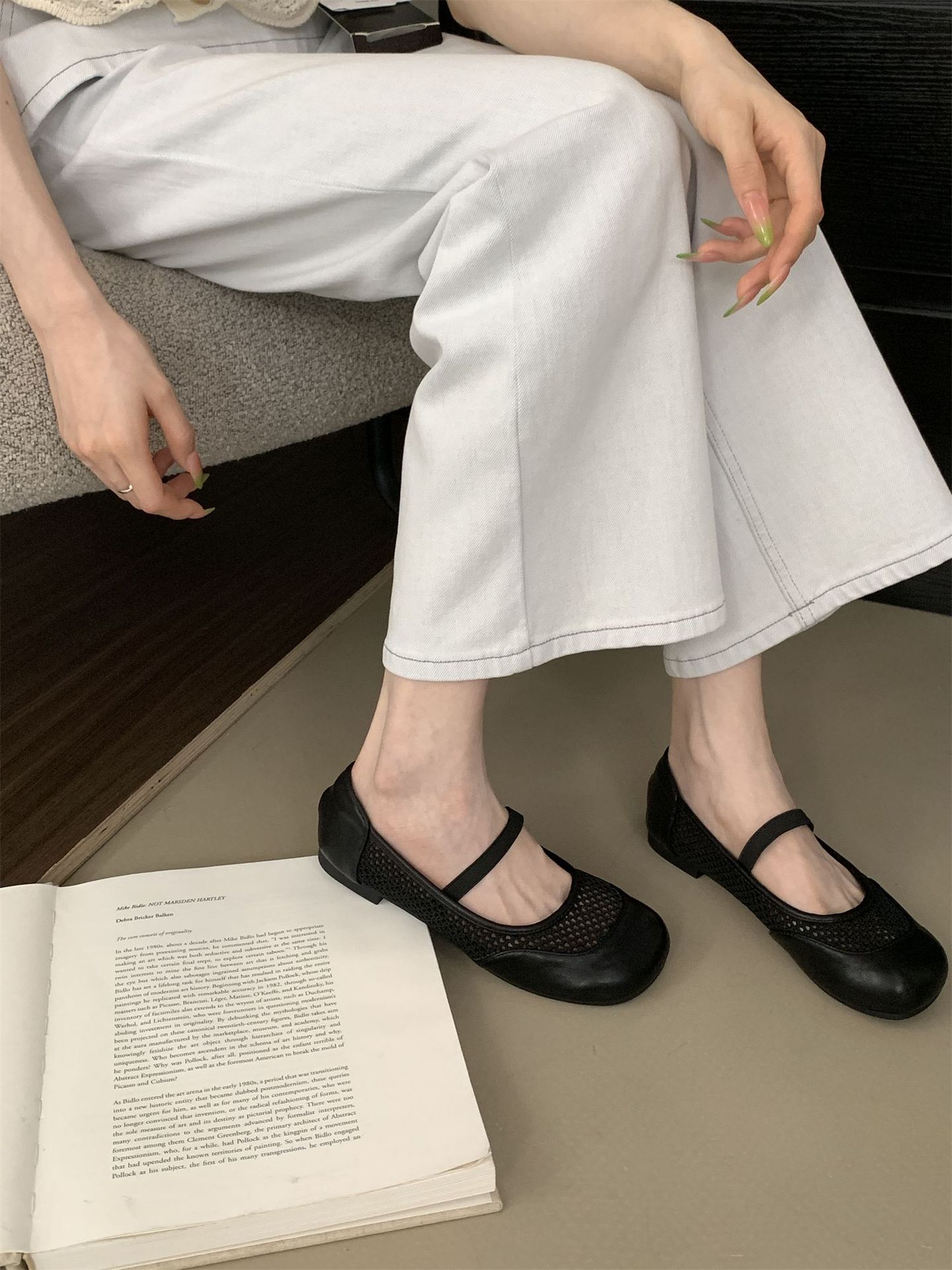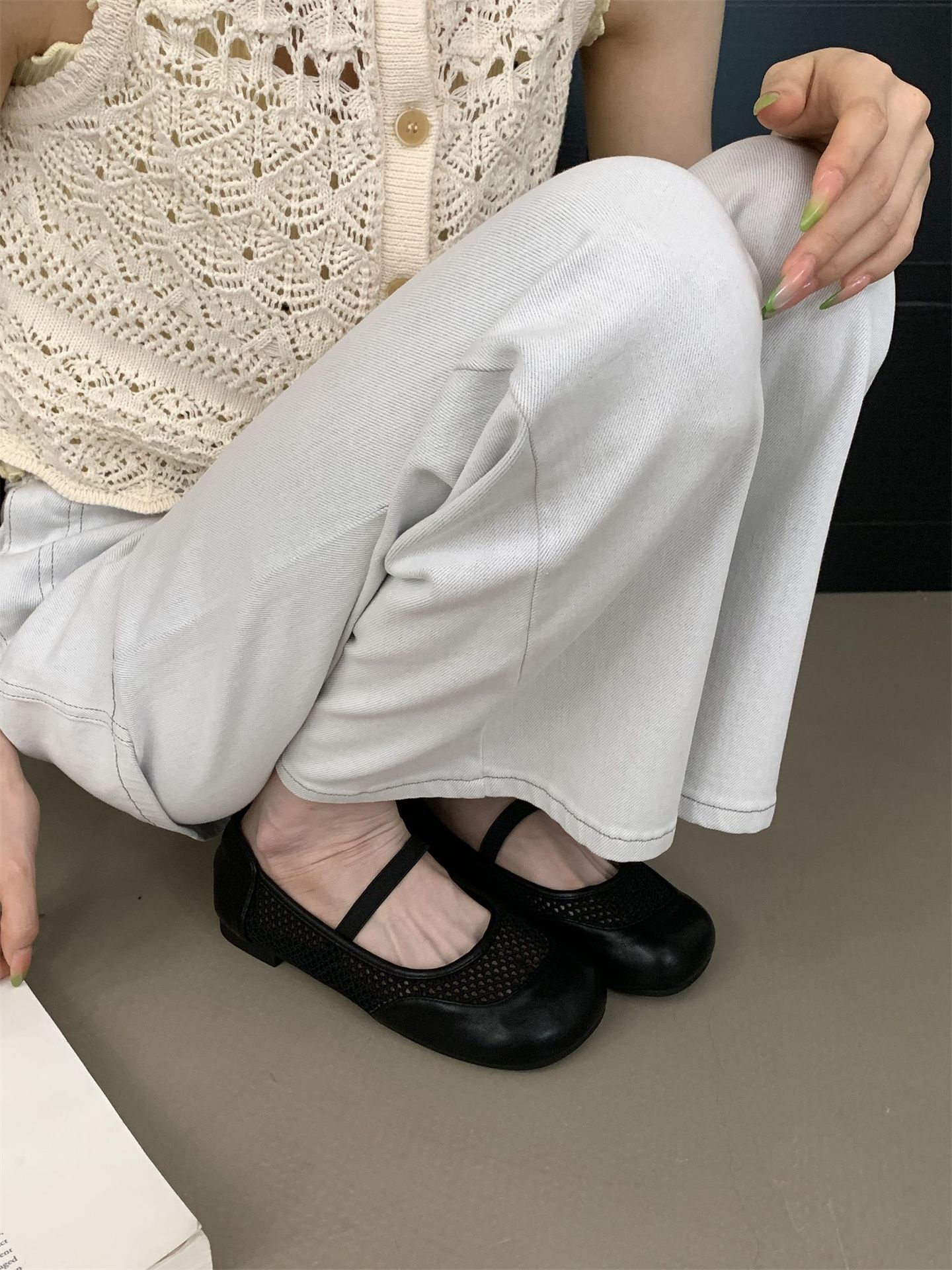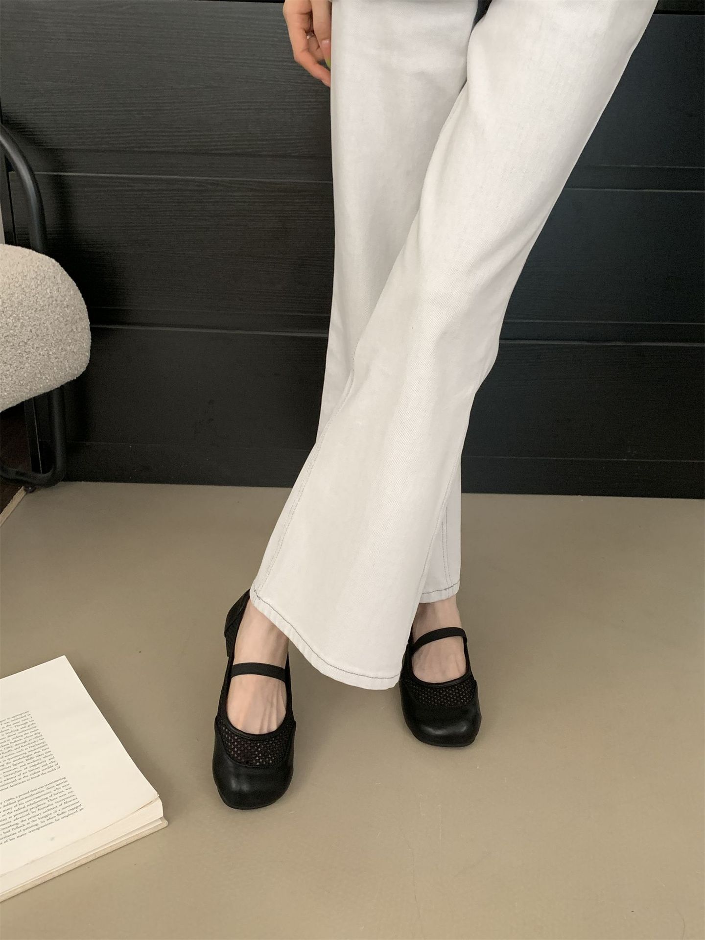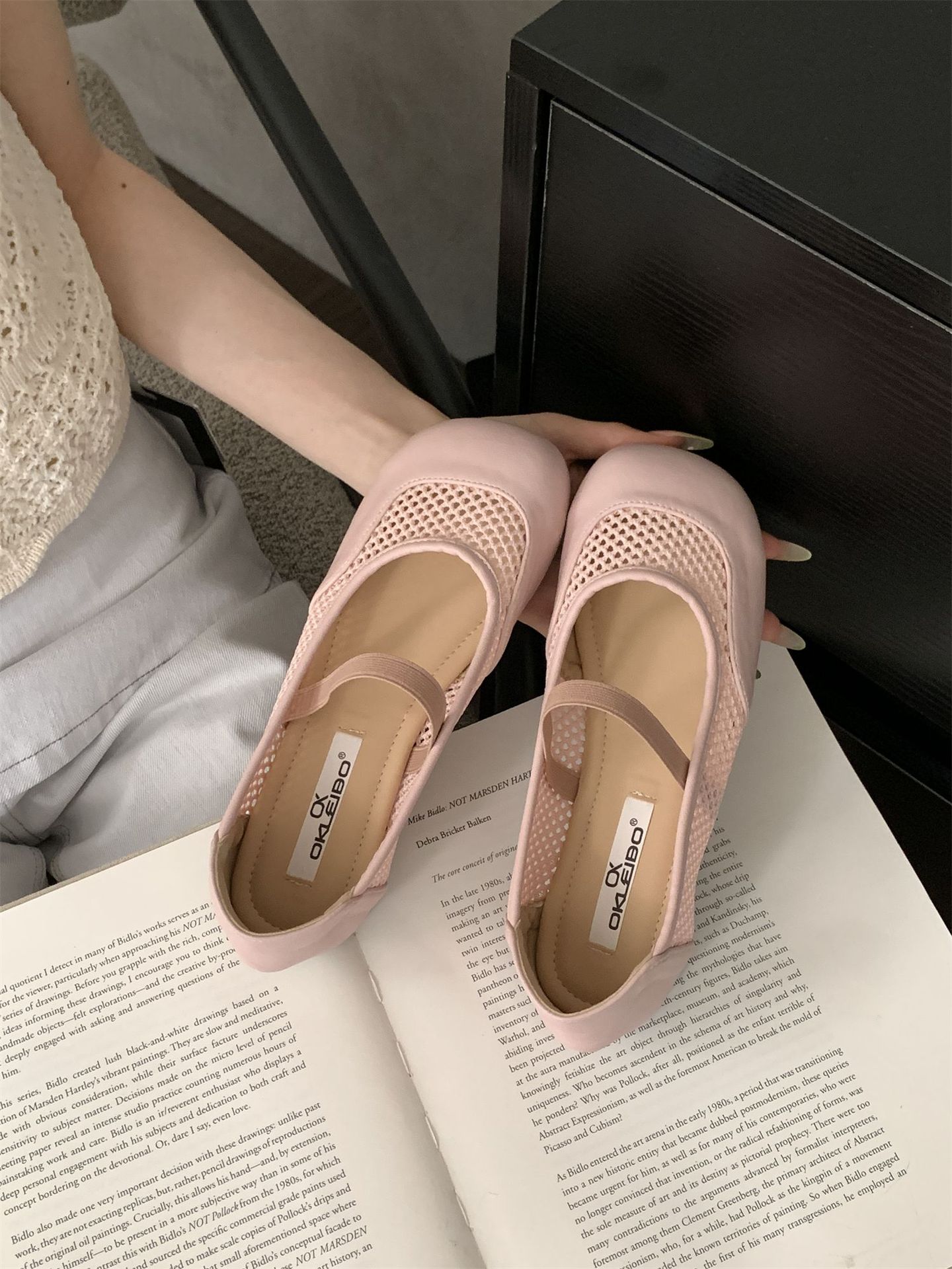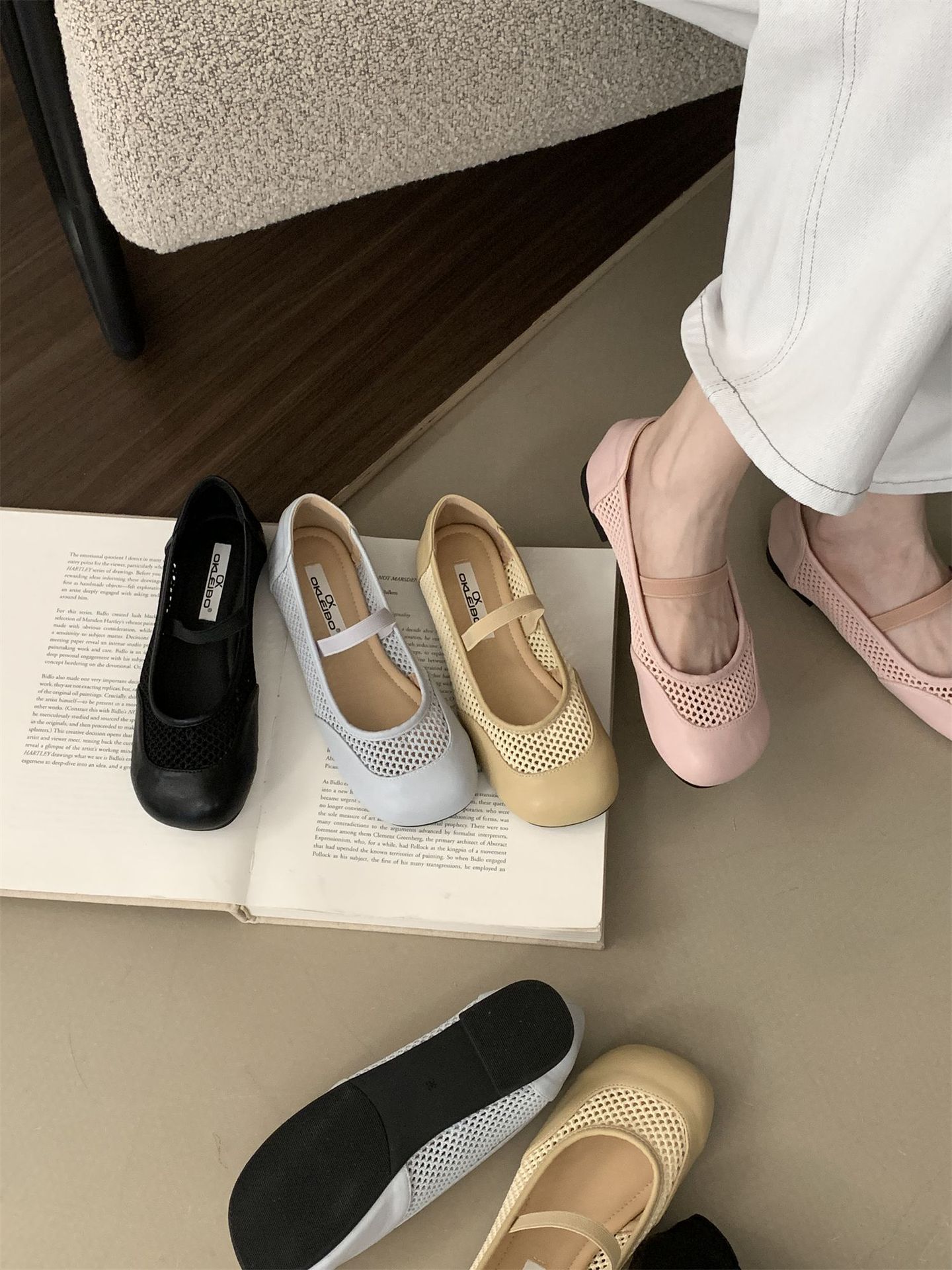 2025년 여름 한국식 프렌치 복고 라운드 투 니치 메쉬 중공 플랫 캐주얼 발레 스타일 발레 슈즈스토어 가기
