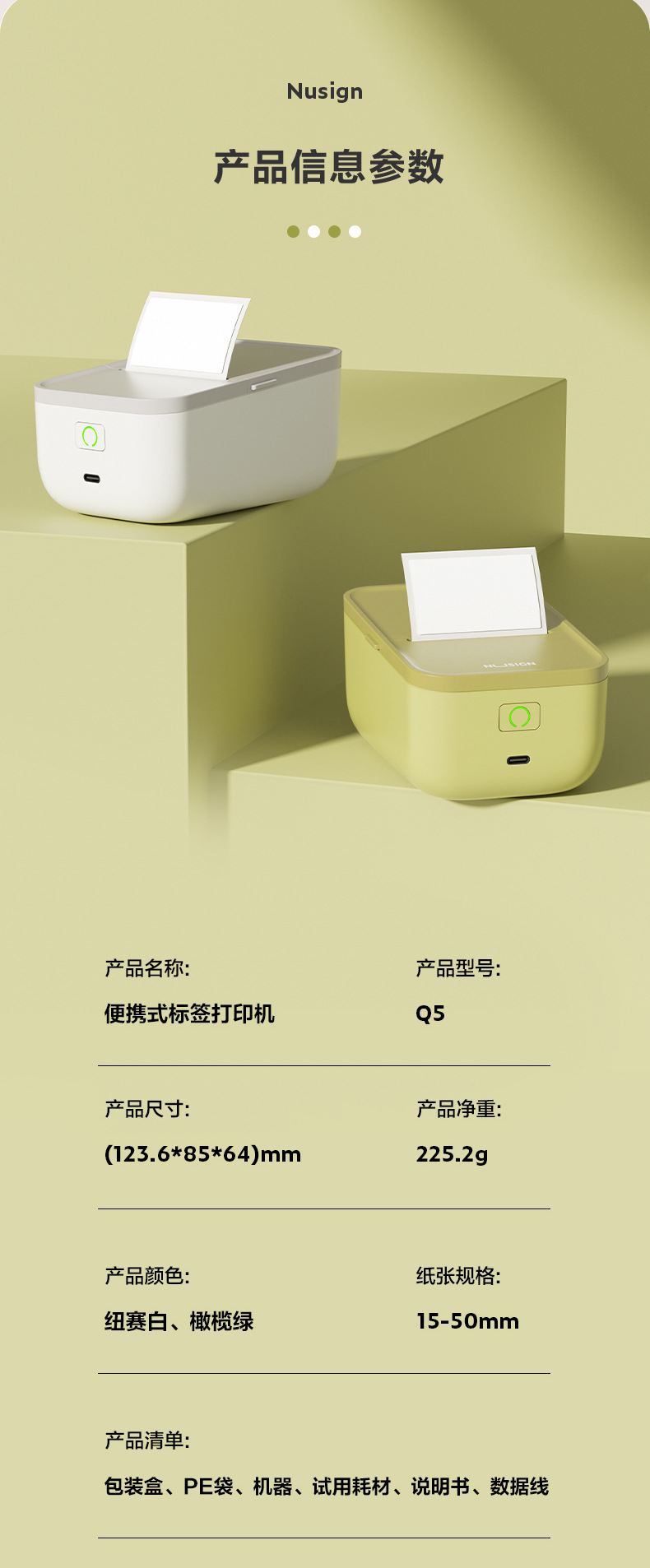 • 공식 표준 구성/Q5 흰색/50mm 너비/긴 배터리 수명/표준 화질 203DPI