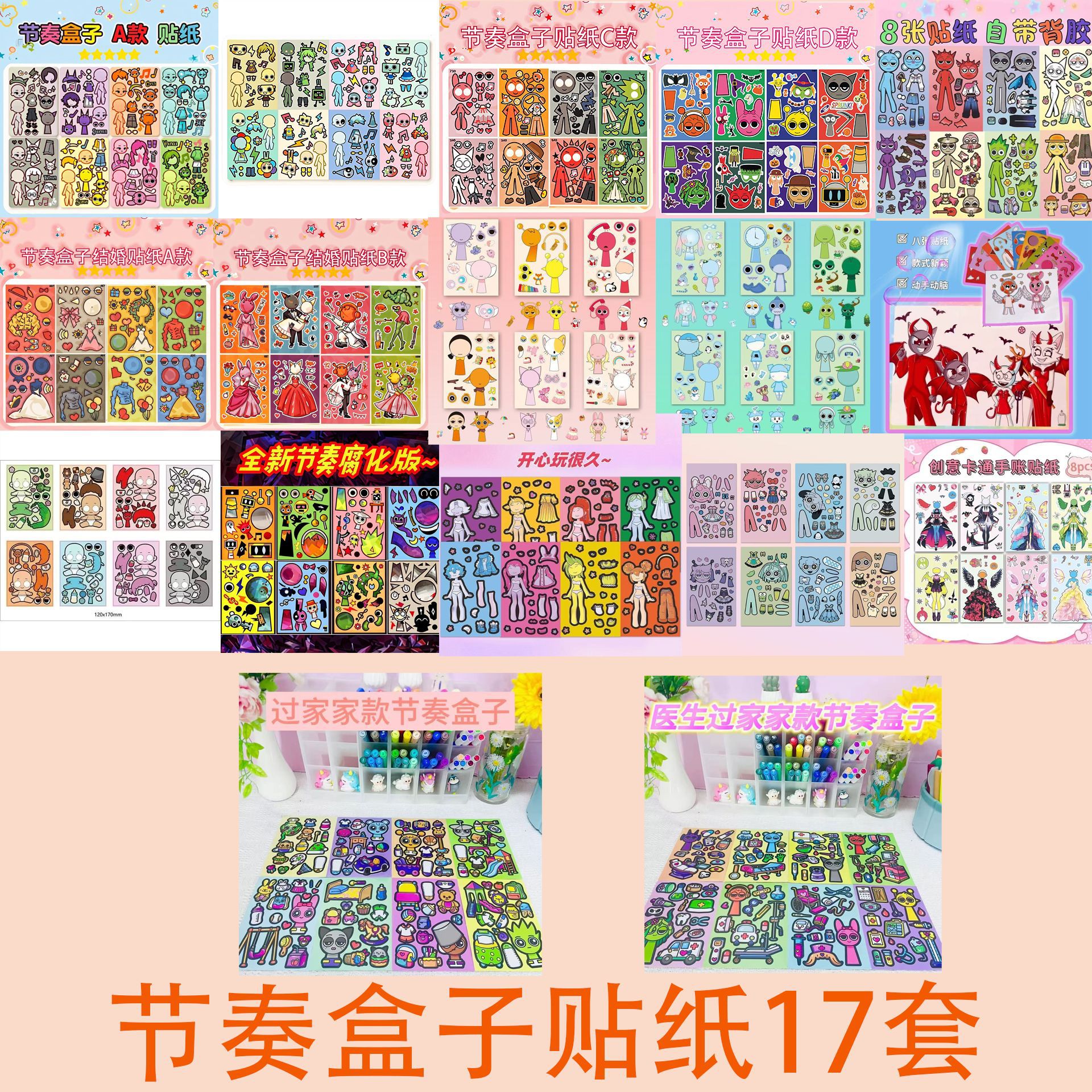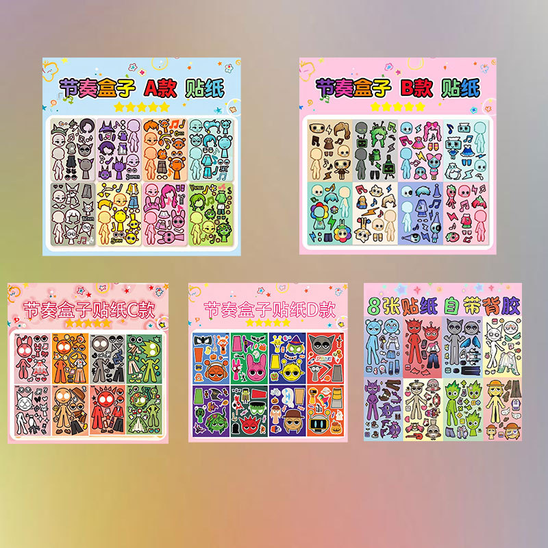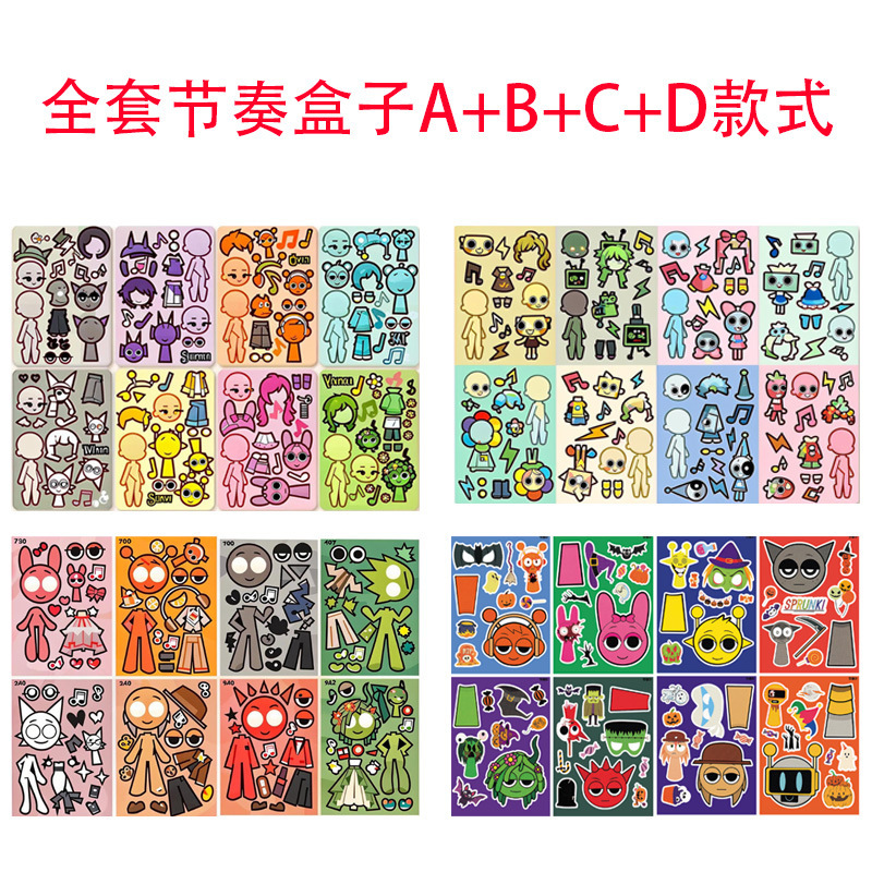 • 리듬 박스 스티커 17세트, 반복되지 않는 132개 + 스티커 드로잉북 전체