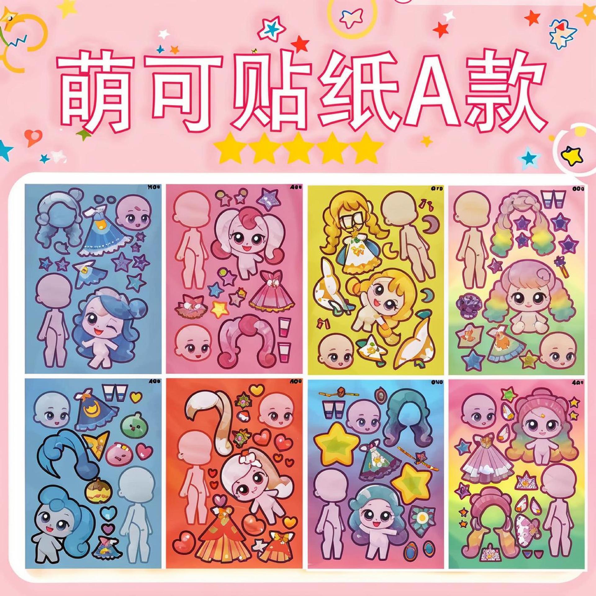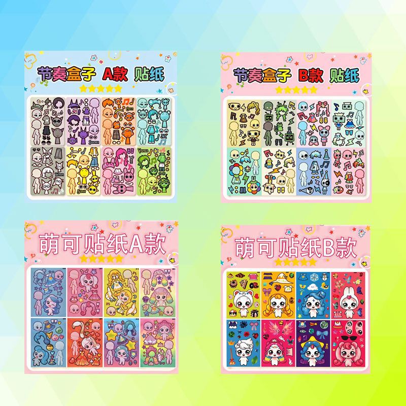 리듬 박스 스티커 소녀 변환 원피스 업 스티커 DIY 어린이 수제 창조적 인 교육 스티커 장난감스토어 가기