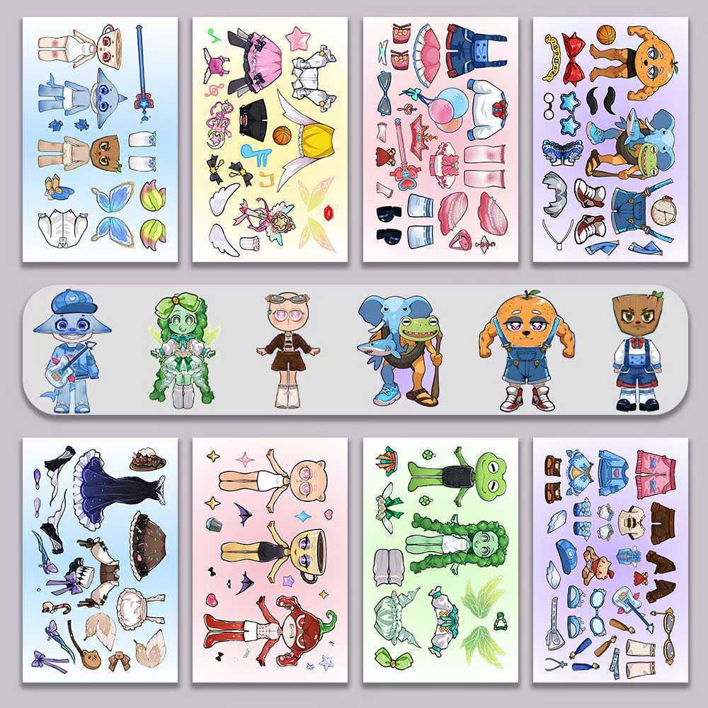 리듬 박스 스티커 소녀 변환 원피스 업 스티커 DIY 어린이 수제 창조적 인 교육 스티커 장난감