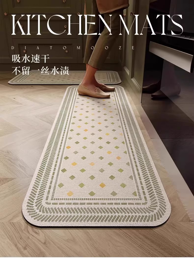 가벼운 고급 주방 바닥 매트 흡수성 오일 디 아톰 진흙 바닥 매트 내마모성 부엌 미끄럼 방지 매트 머리카락을 관리하기 쉽습니다.스토어 가기