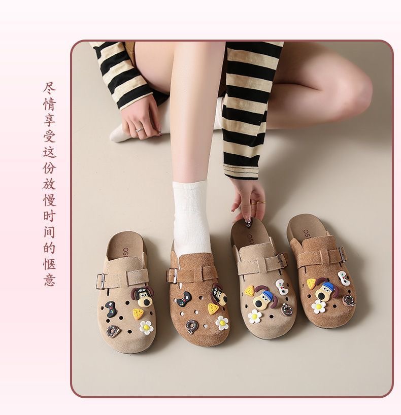 여성을위한 빈티지 Birkenish 하프 슬리퍼 2025 봄 새로운 의상 소프트 단독 편안한 동굴 신발 만화 발가락 슬리퍼스토어 가기