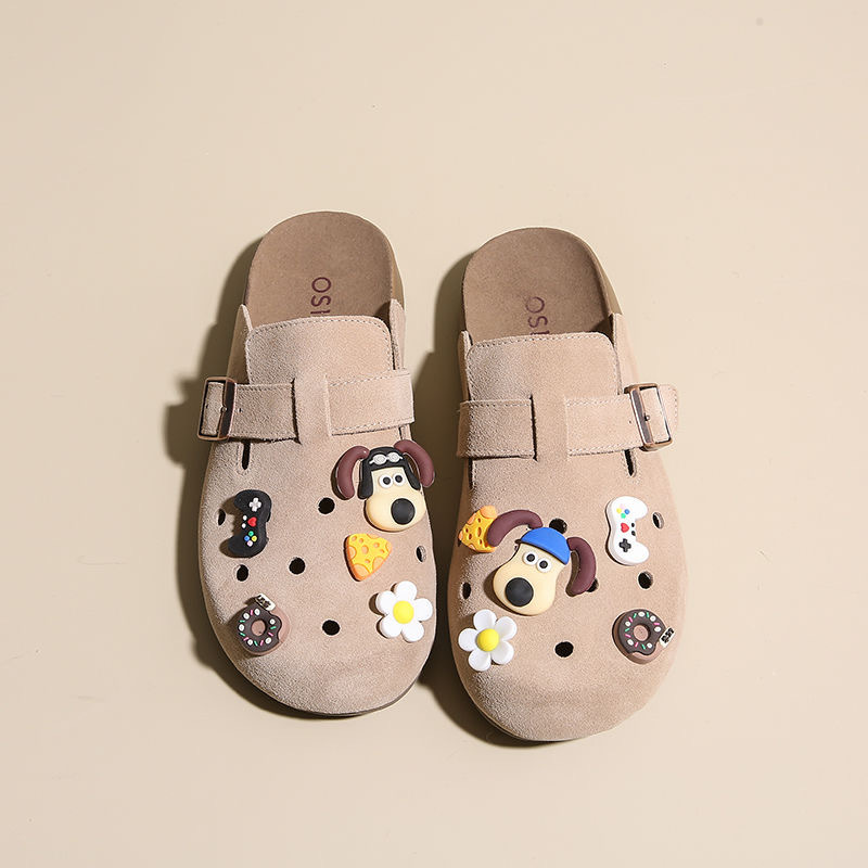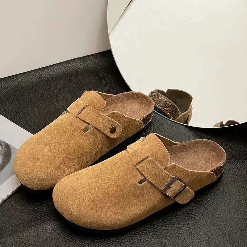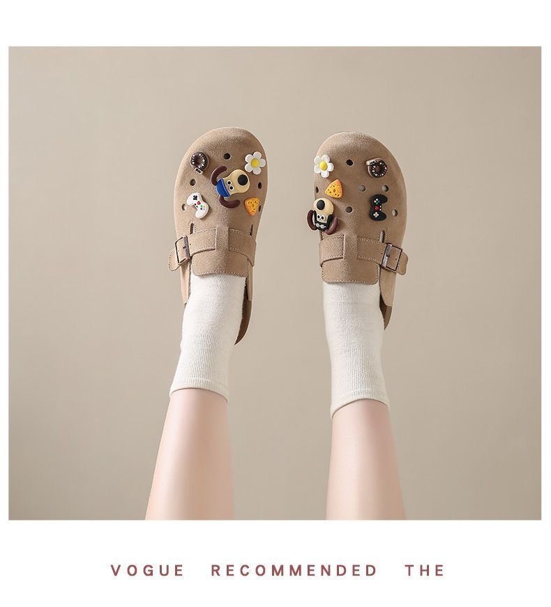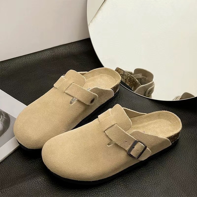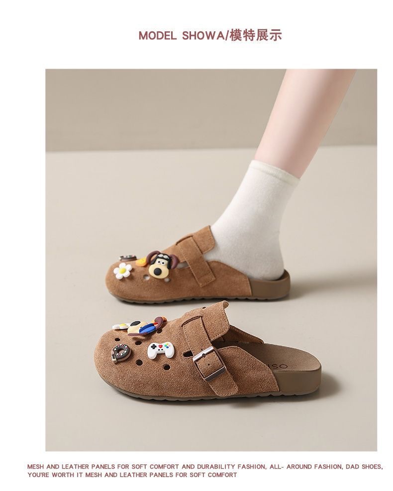 여성을위한 빈티지 Birkenish 하프 슬리퍼 2025 봄 새로운 의상 소프트 단독 편안한 동굴 신발 만화 발가락 슬리퍼