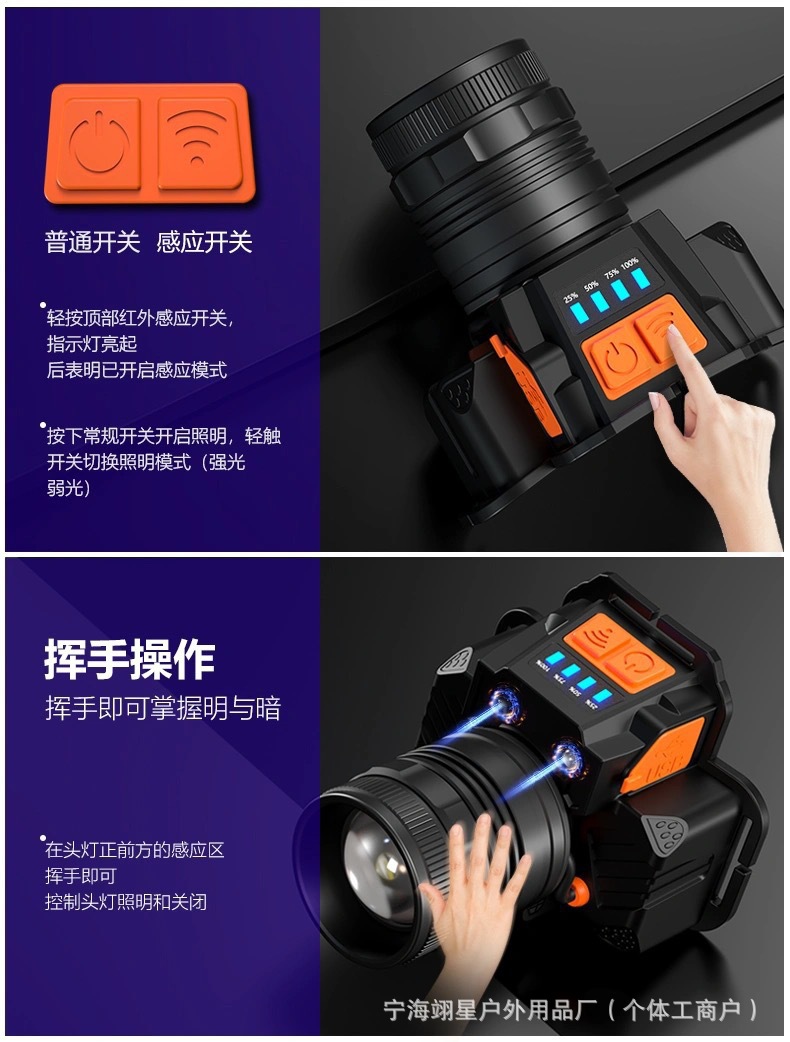 새로운 LED 제스처 센서 헤드 라이트 회전 줌 헤드 라이트 USB 충전식 강한 빛 야외 야간 낚시 방수 소형 헤드 라이트