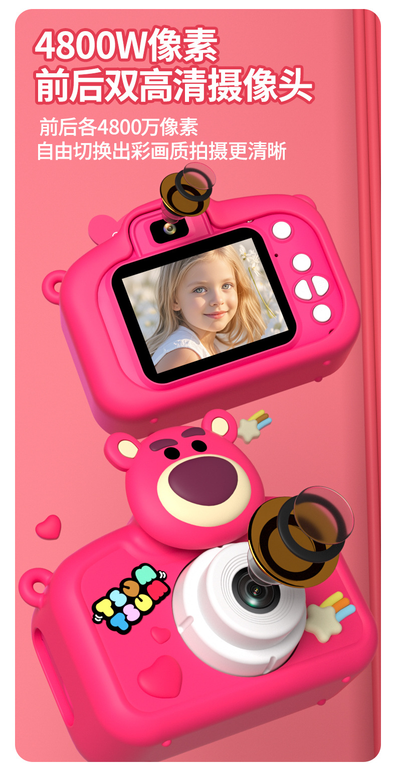 딸기 곰 미키 미니 만화 어린이 미니 카메라 어린이 귀여운 장난감 선물 HD 픽셀 카메라