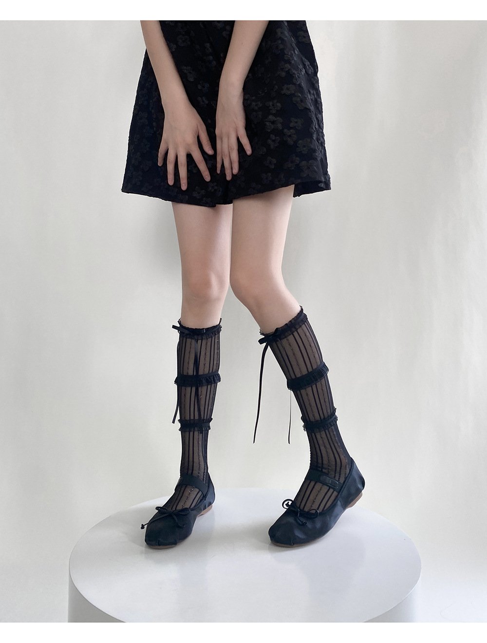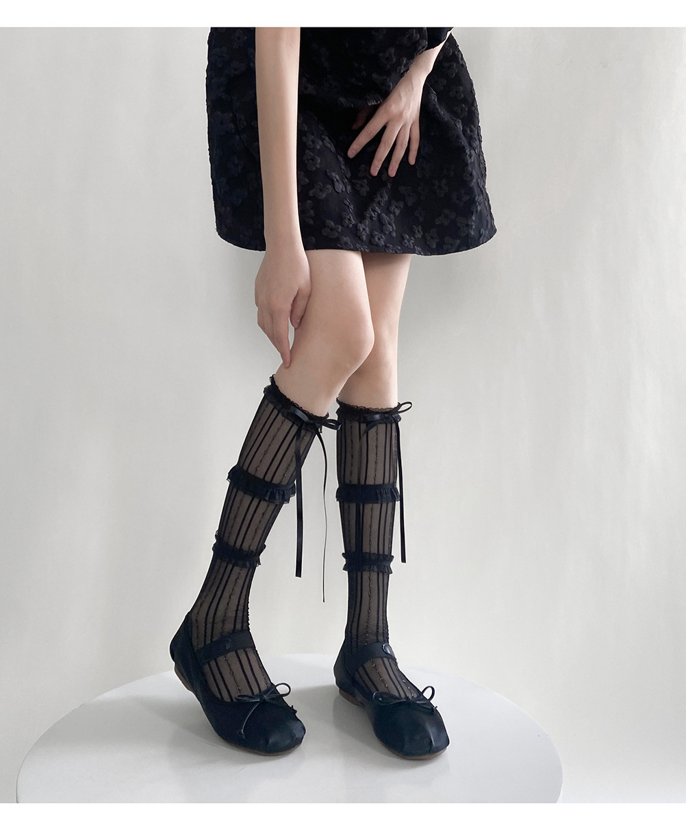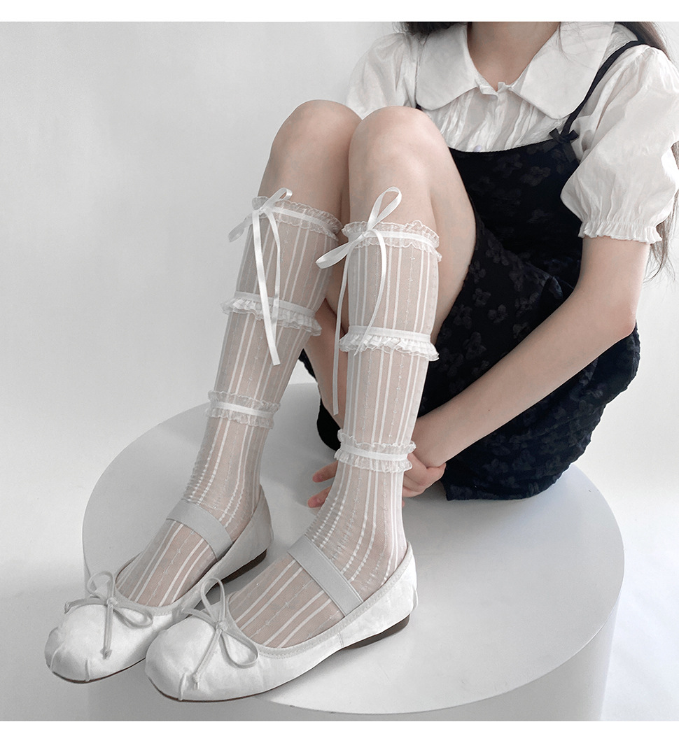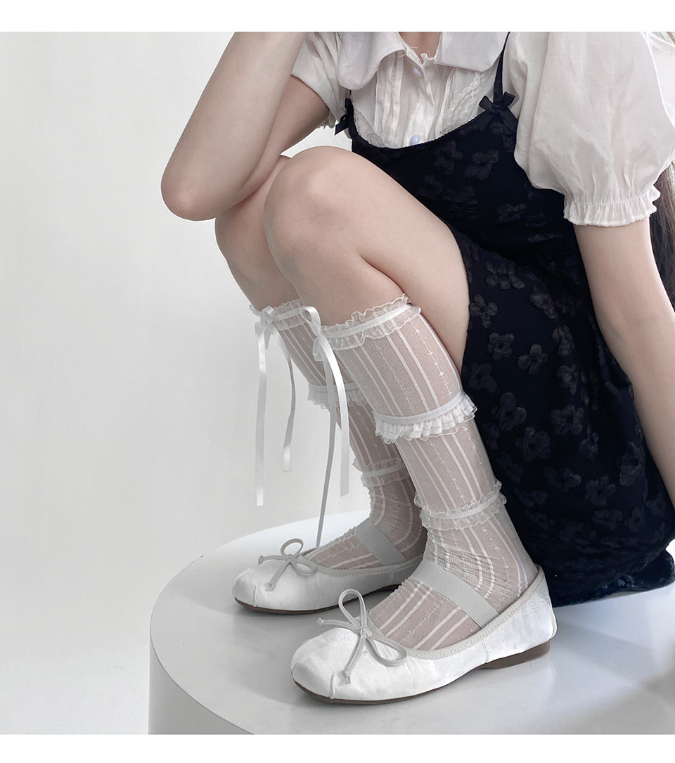 발레 스타일 메리 제인 화이트 레이스 보우 종아리 양말 여름 초박형 미드 튜브 jk 양말스토어 가기