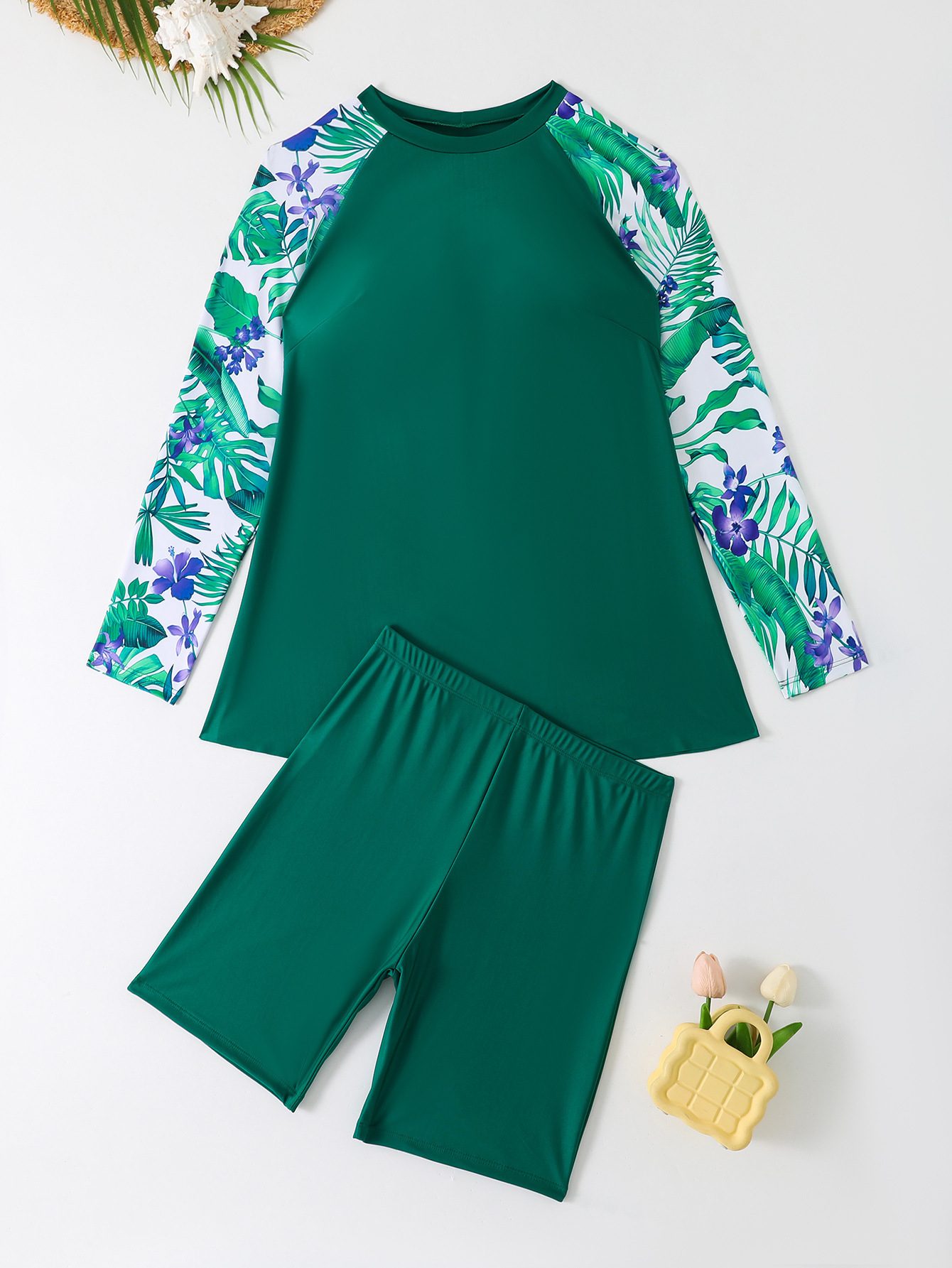 크로스보더 스플릿 수영복 긴팔 뚱뚱한 여성용 잠수복 반바지 플러스 사이즈 플러스 사이즈 유럽 및 미국 대외 무역 수영복 서핑스토어 가기