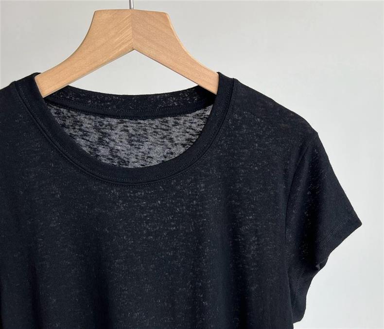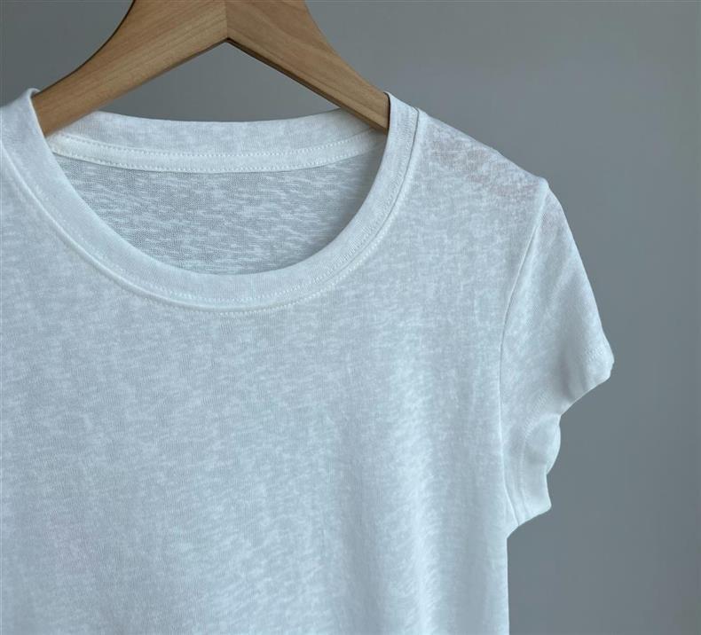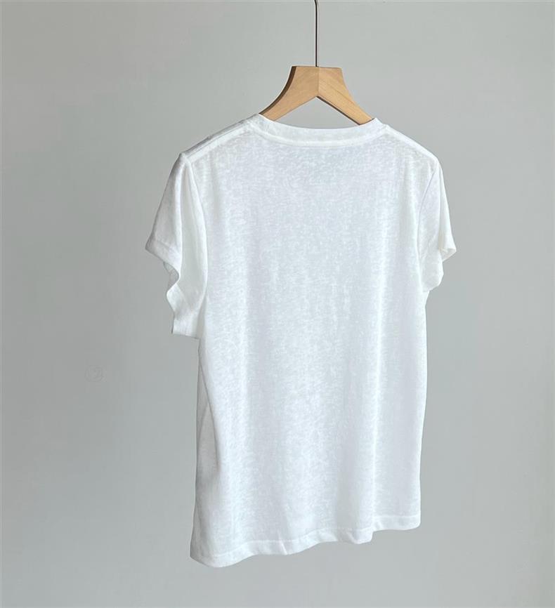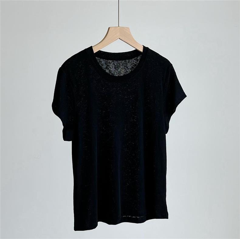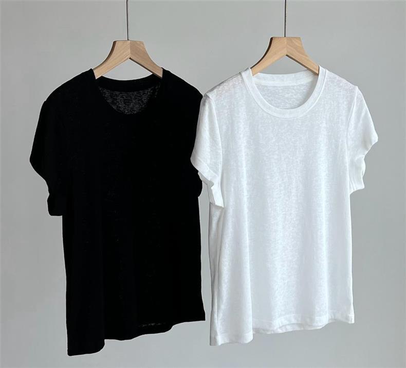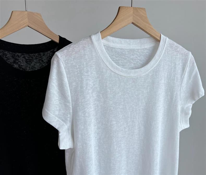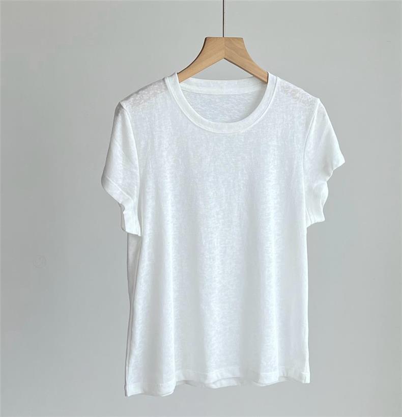 [여름 실용] 여성용 린넨 라운드넥 반팔 티셔츠, 가볍고 살짝 비치는 미니멀리스트 솔리드 컬러 얇은 여름 상의스토어 가기