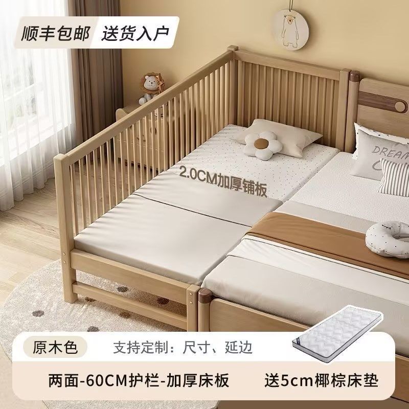 원목 아기 접합 침대 호두나무 어린이 침대 유아용 침대 확장 접합 대형 침대 가드 레일이 있는 어린이용 사이드 침대