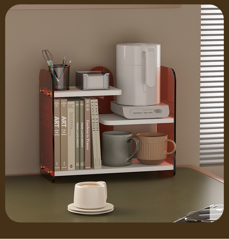데스크탑 스토리지 랙 아크릴 데스크 스토리지 컵 홀더 사무실 작업 위치 스토리지 랙 카운터 테이블 티컵 스토리지 랙