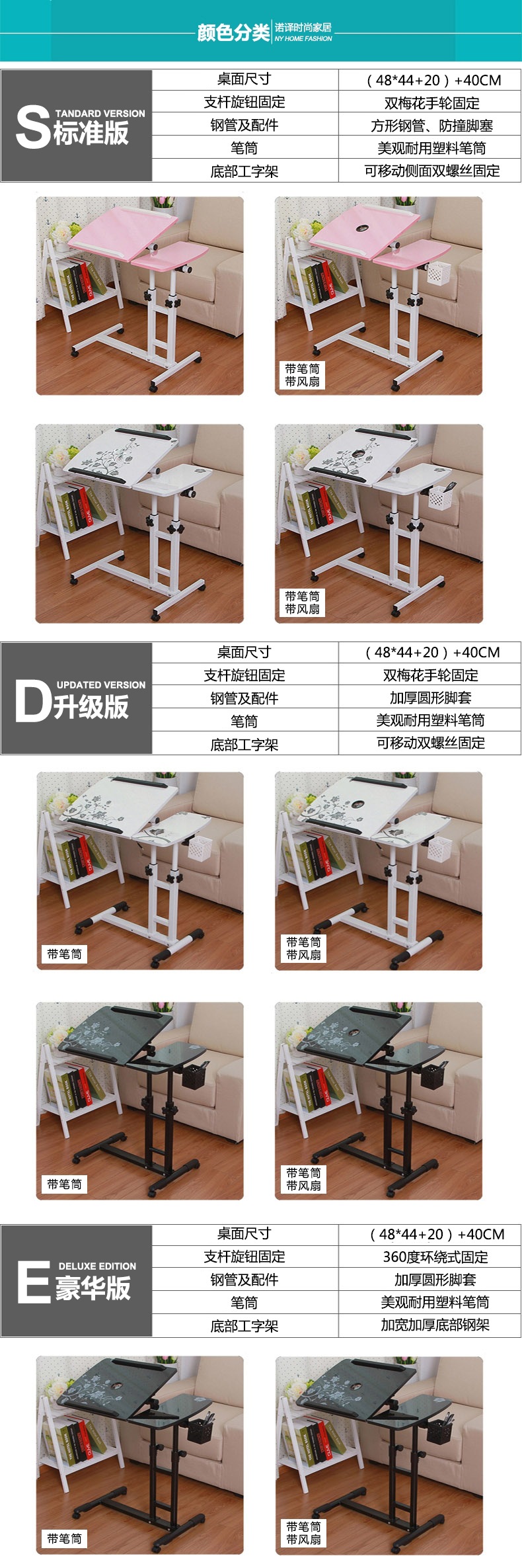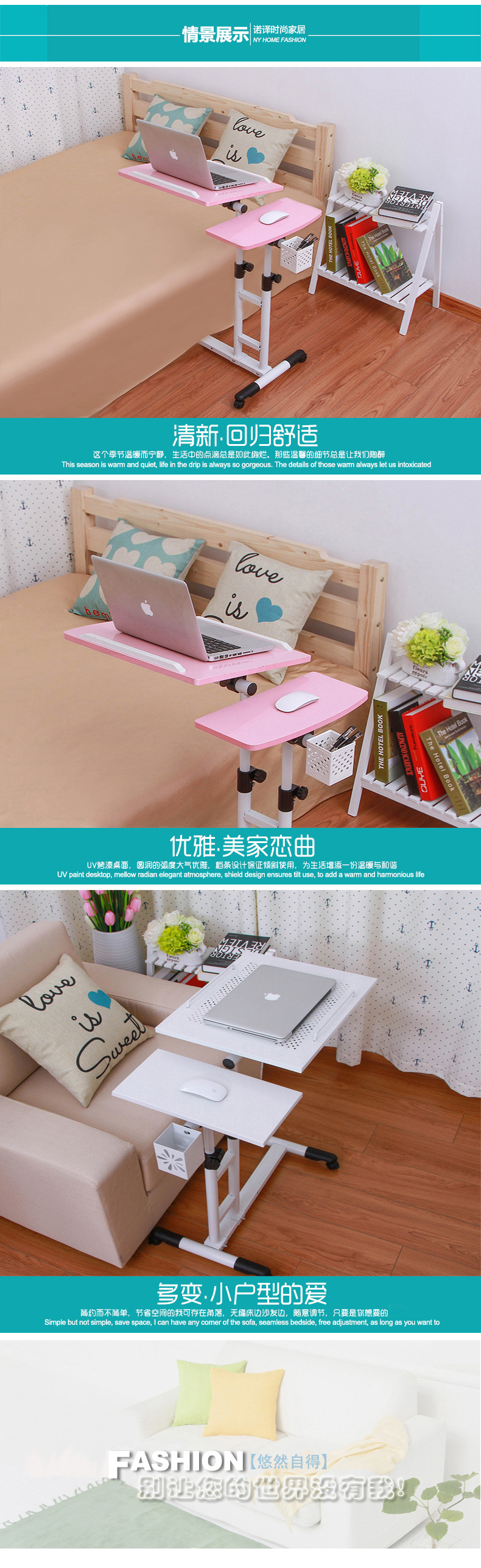 패셔너블한 가정용 간단한 노트북 컴퓨터 테이블, 게으른 침대 옆 테이블, 모바일 리프팅 책상스토어 가기