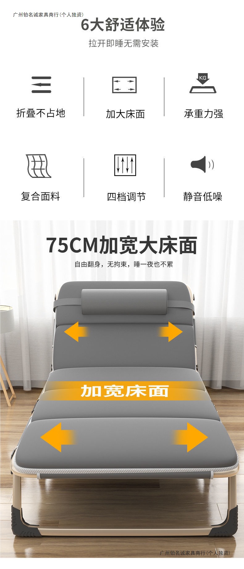 접이식 침대 가정용 간단한 싱글 낮잠 침대 사무실 성인 낮잠 침대 캠프 침대 휴대용 다기능 안락 의자스토어 가기