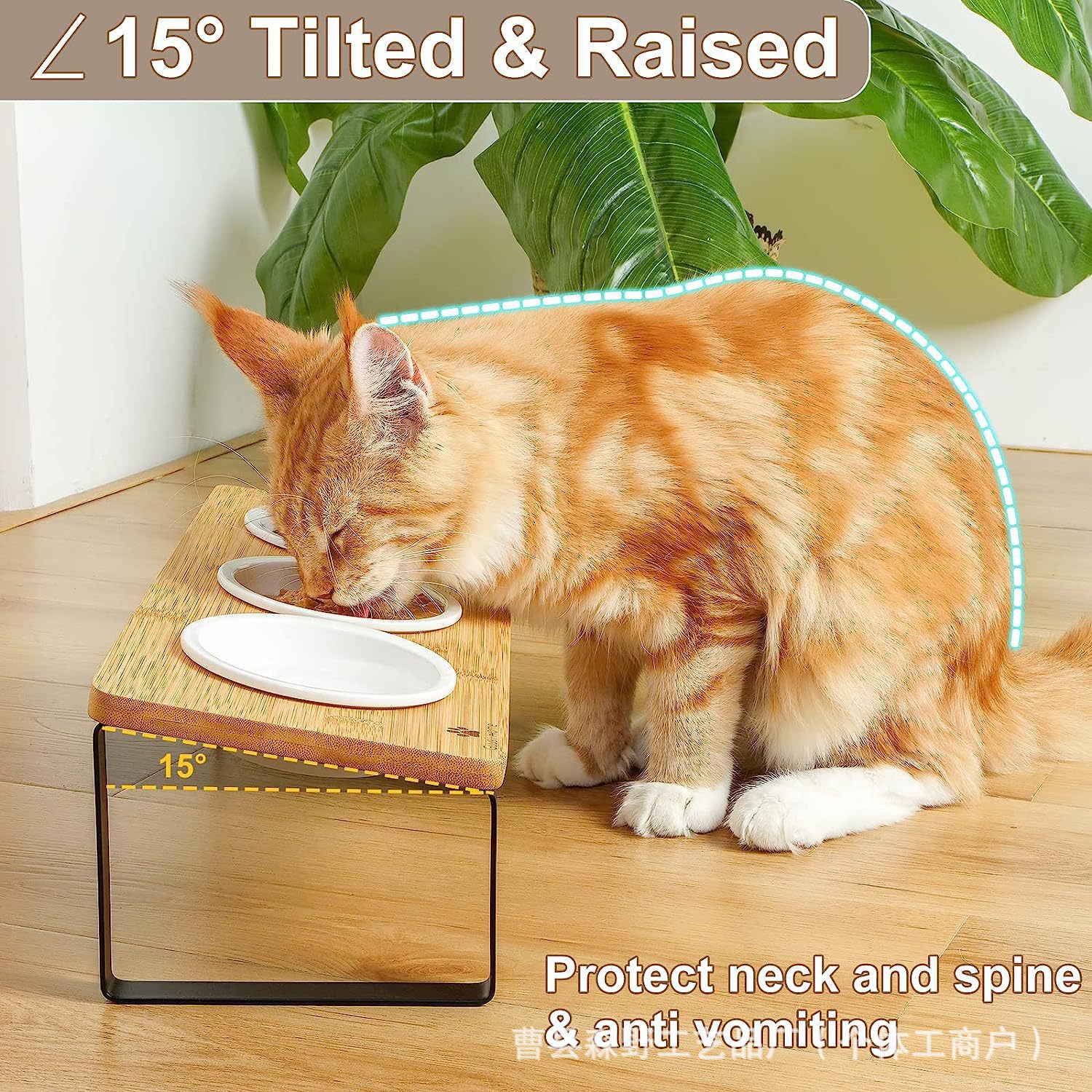고양이 사료 물 그릇 높이 조절 가능한 새끼 고양이 식탁 단단한 나무 3 그릇 고양이 피더 실내 애완 동물 고양이 먹이 랙스토어 가기