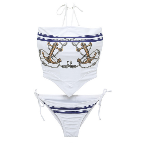 제조 업체 도매 2025 새로운 선원 스타일 스플릿 수영복 작은 가슴 슬리밍 중공 비키니 수영복 여성 비키니