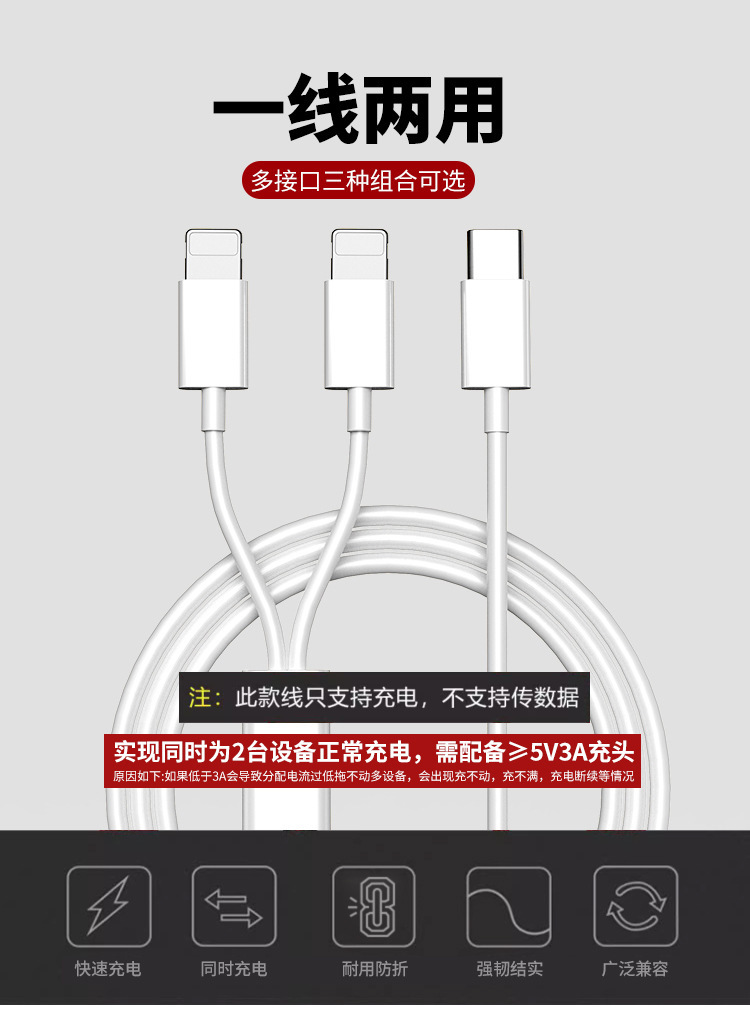 Apple Huawei 듀얼 타입 안드로이드 휴대폰 자동차 USB 충전에 적합한 1-2 데이터 케이블 2-in-1 고속 충전스토어 가기