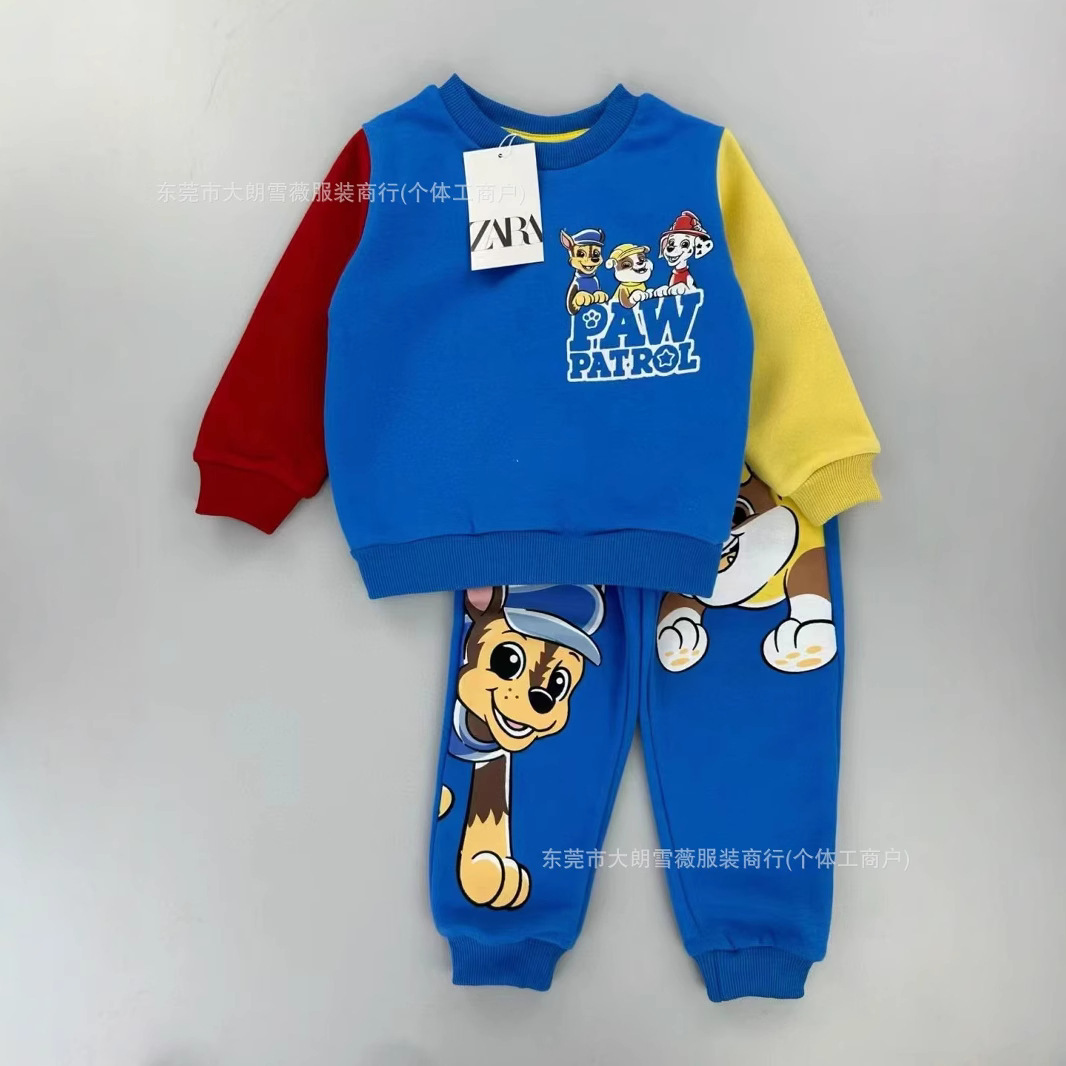 Patpat 아동복 2-6 세 어린이 만화 유럽과 미국의 어린이 얇은 벨벳 운동복 세트 소년과 소녀 후드 투피스 세트스토어 가기