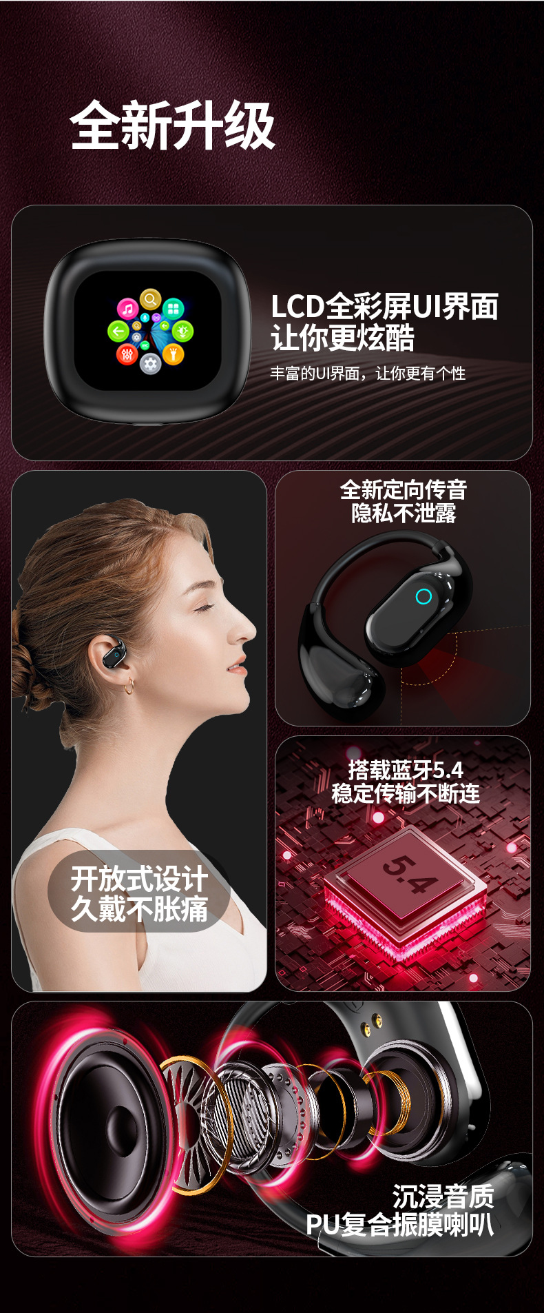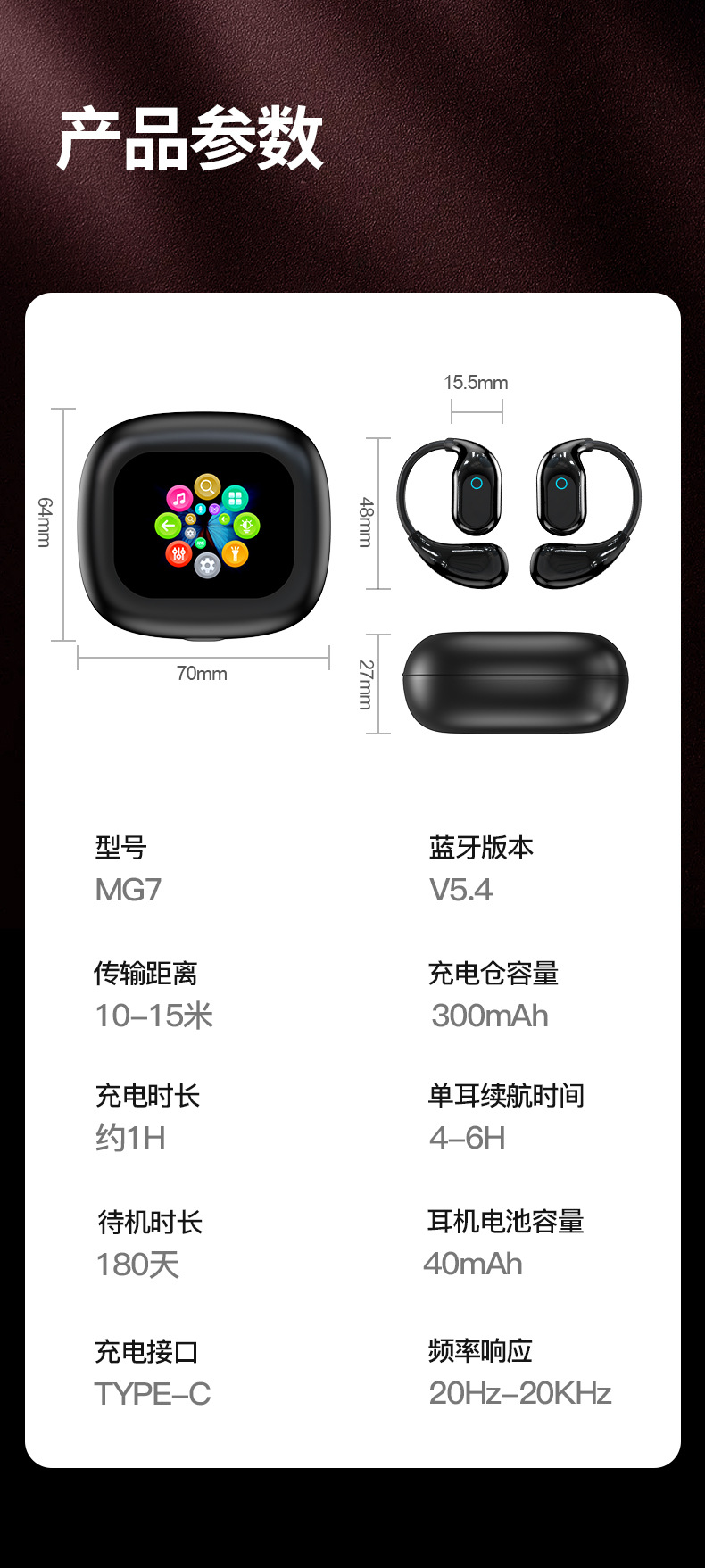 새로운 Ai 지능형 번역 헤드셋 오픈 OWS 터치 스크린 블루투스 헤드셋 MG7 LCD 컬러 스크린 무선 헤드셋스토어 가기