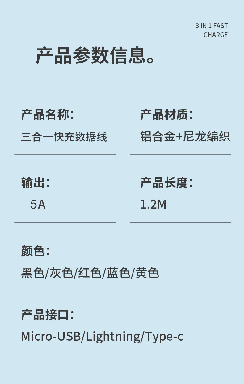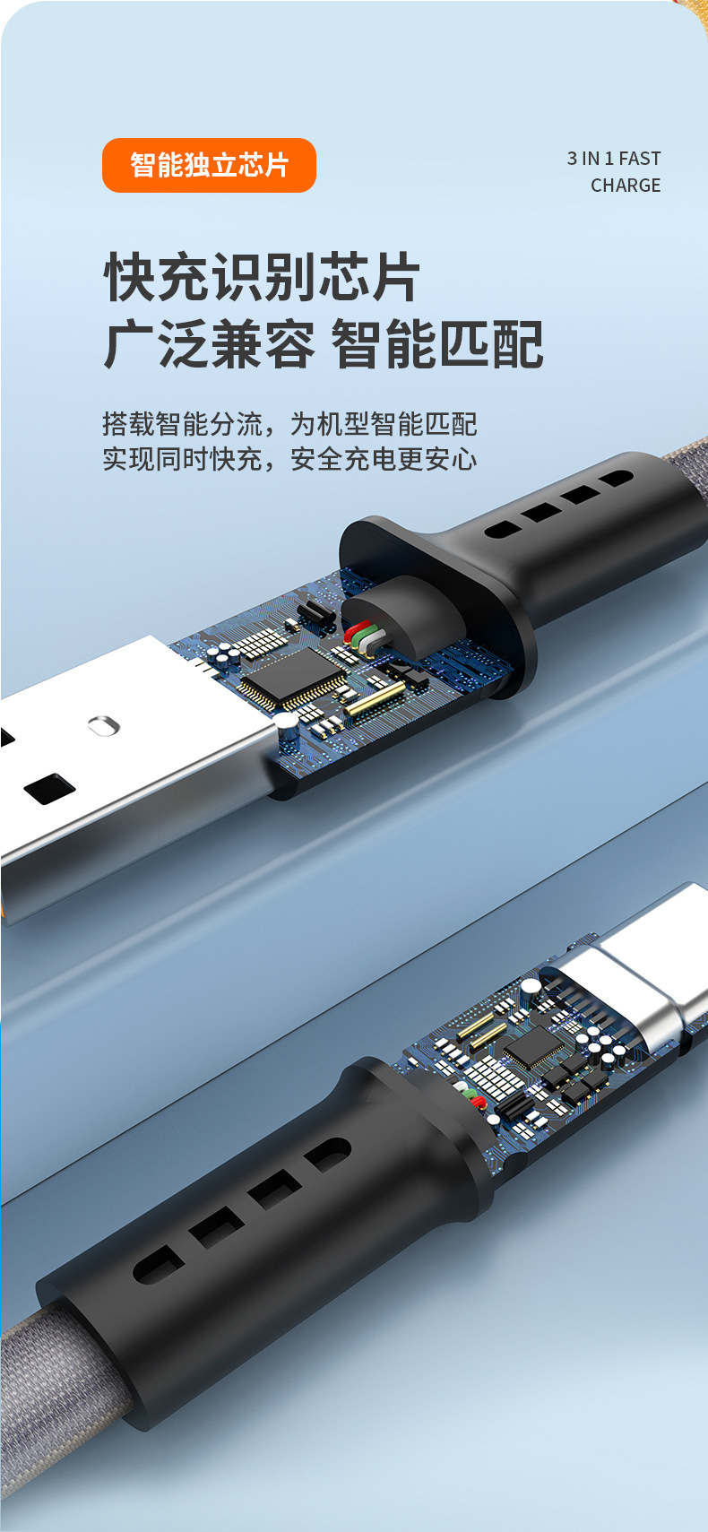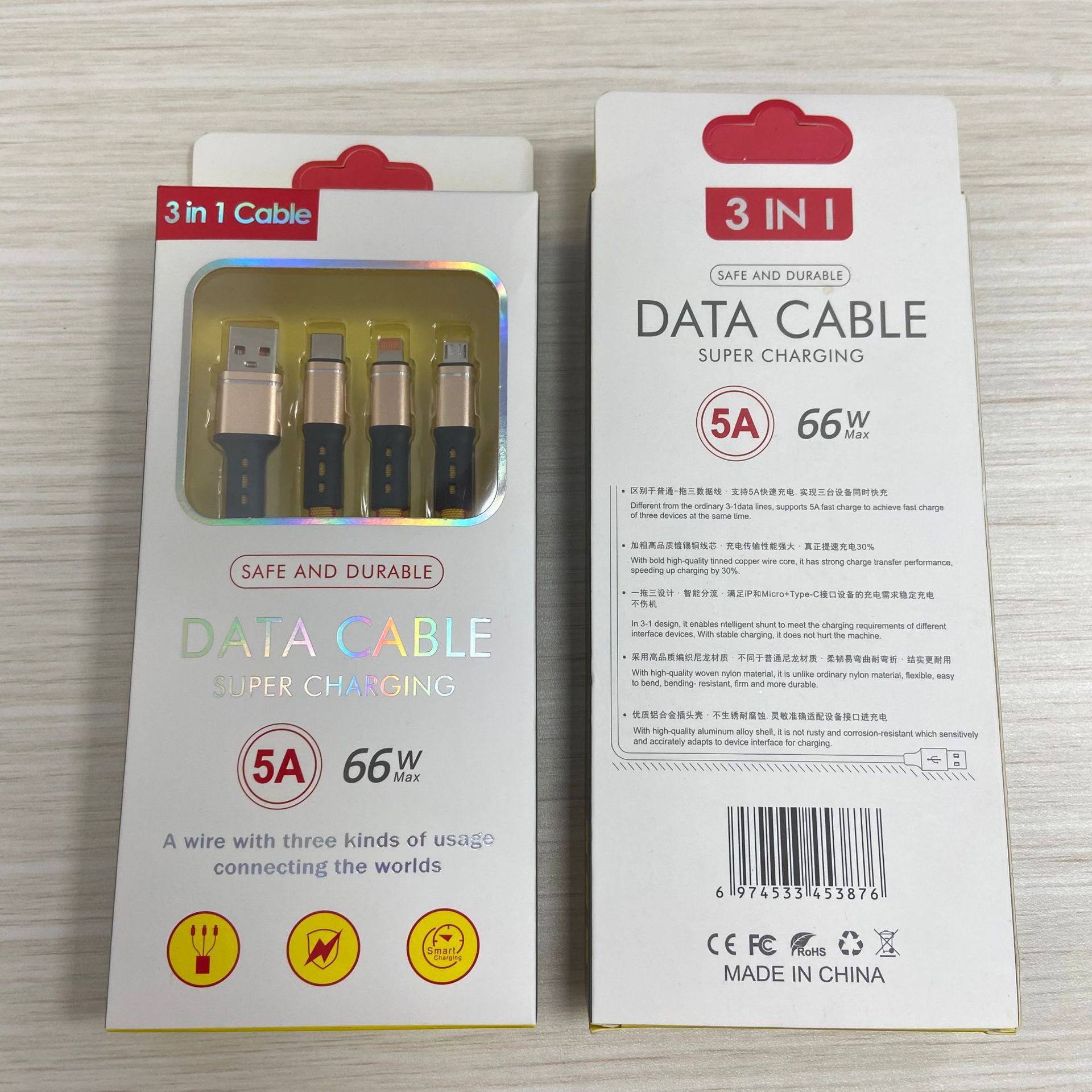 고품질 인기 모델 Overlord 66w 5A 초고속 충전 3-in-1 브레이드 1-3 선물 휴대폰 충전 데이터스토어 가기