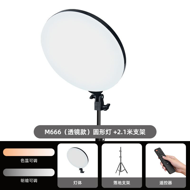 [국경 간 핫 세일] M666 테스트 발광 평면 패널 램프 2.4G 렌즈 원형 고휘도 광원 보조 조명