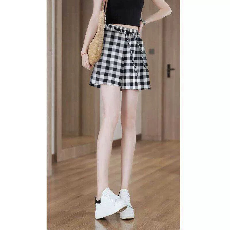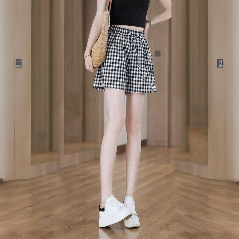 새로운 일본식 잠옷, 격자 무늬 잠옷, 여름 반바지, 루즈한 여성용 슬리밍 홈 팬츠, 여성용 여름 하이 웨이스트